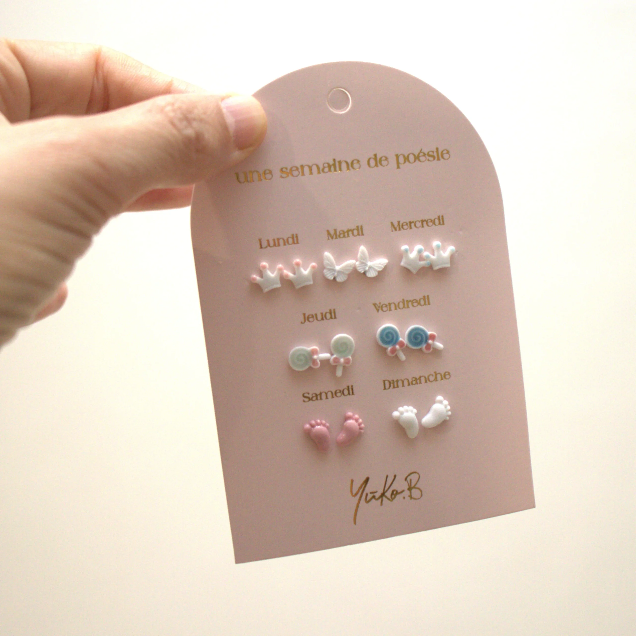 Ensemble de 7 paires de boucles d’oreilles en céramique – Une semaine de poésie Baby.