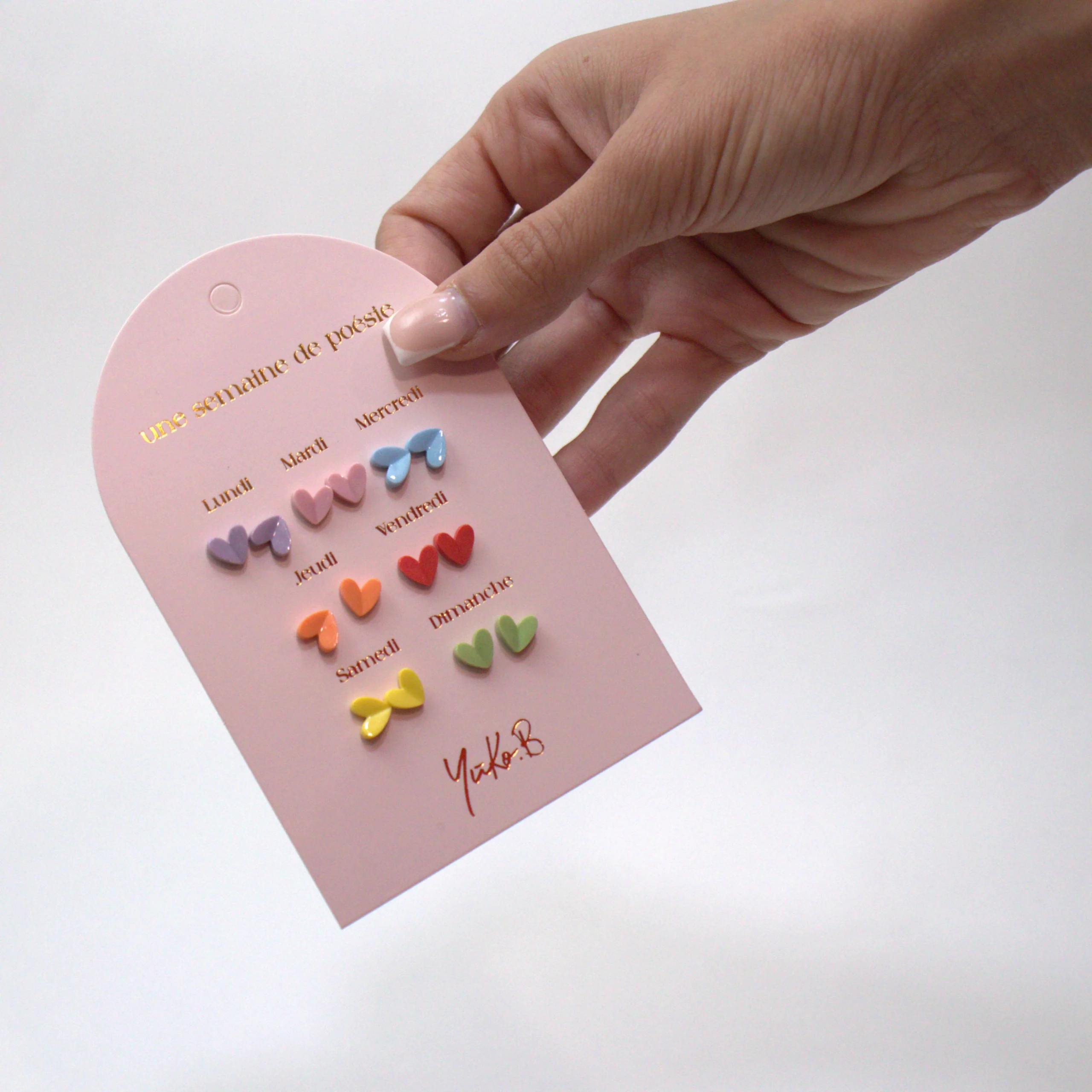 Ensemble de 7 paires de boucles d’oreilles en céramique – Une semaine de poésie Coeurs.