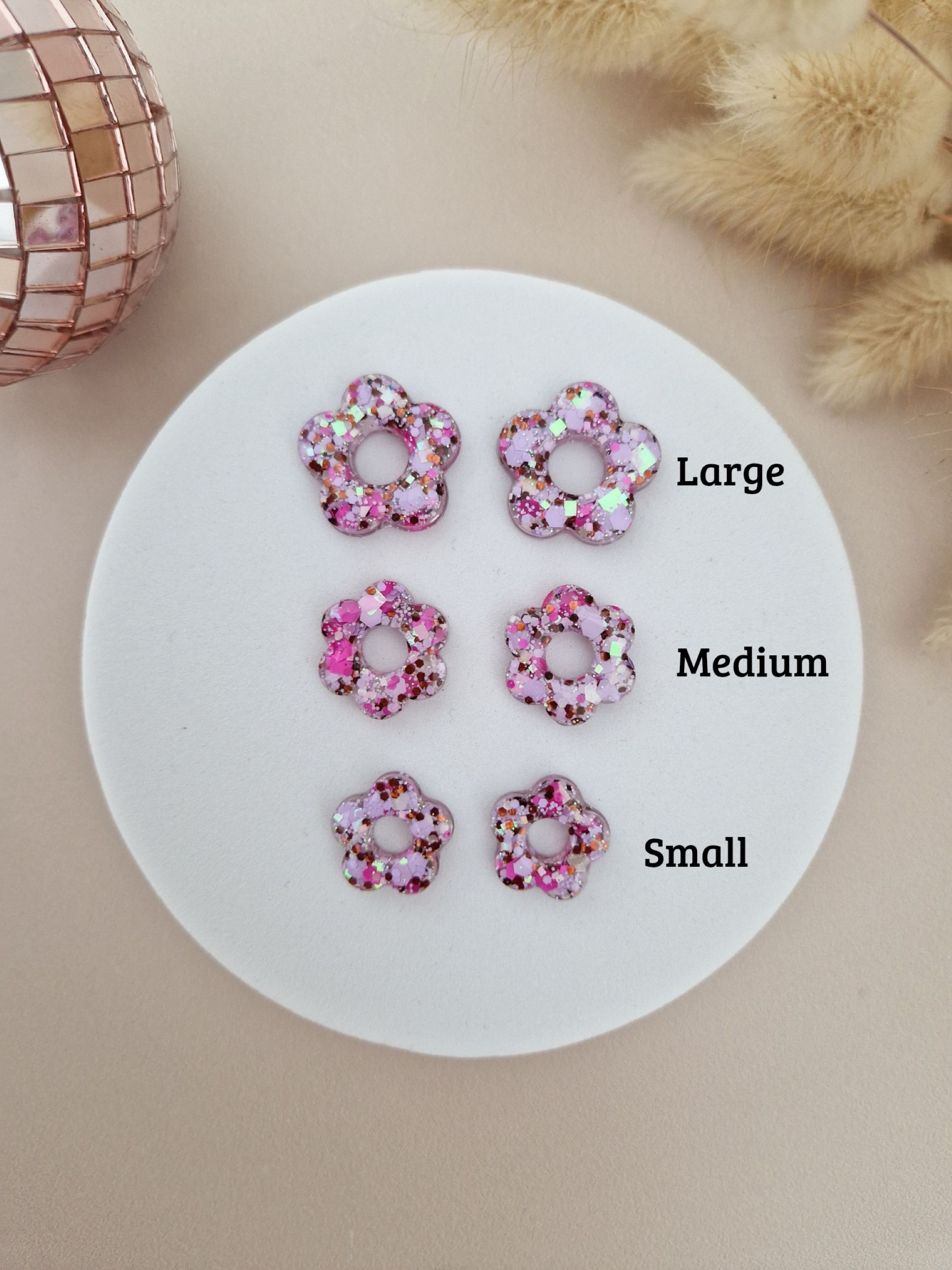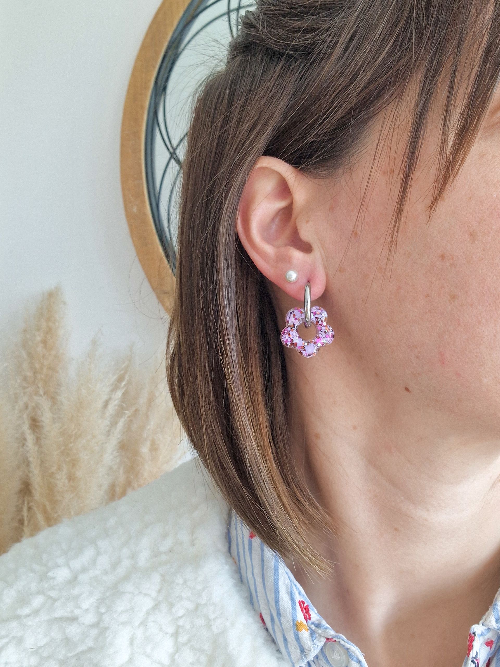 fleur est faite main, en résine de marque française, avec inclusion de paillettes.