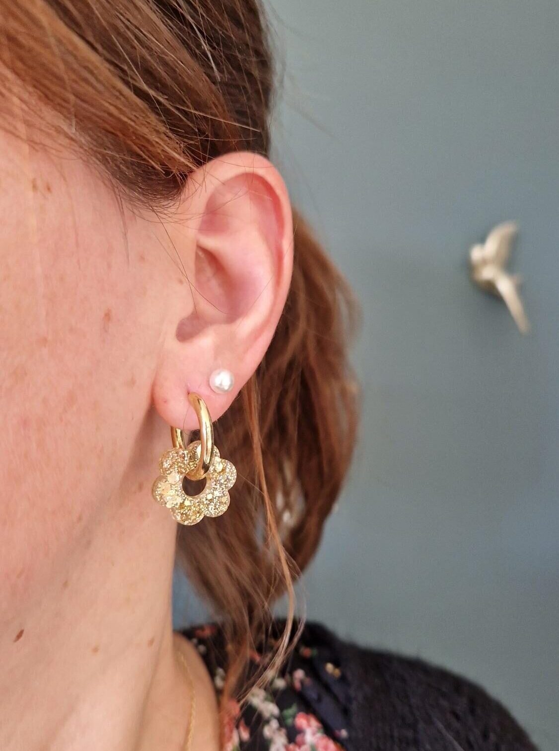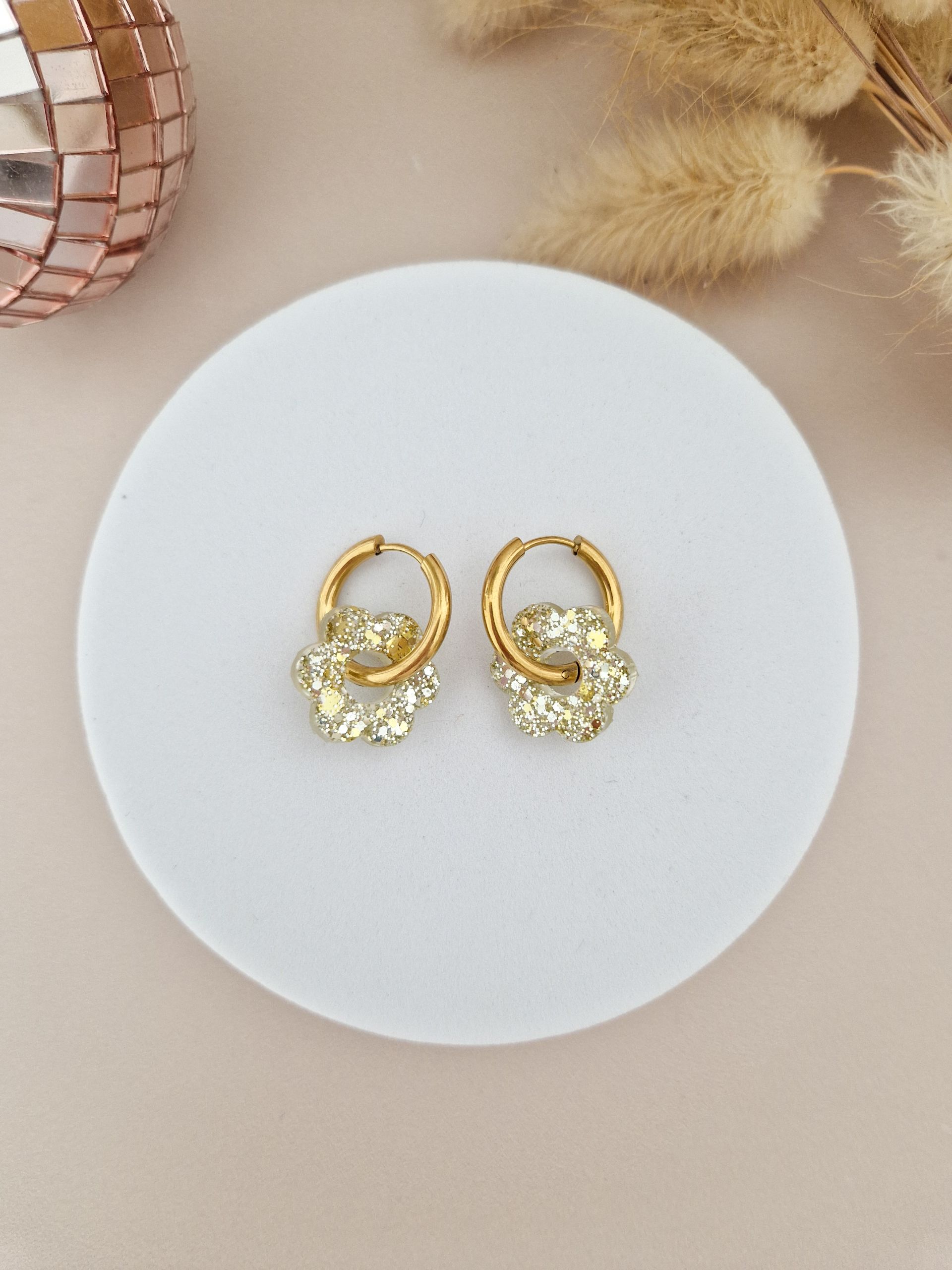 La fleur est faite main, en résine de marque française, avec inclusion de paillettes.