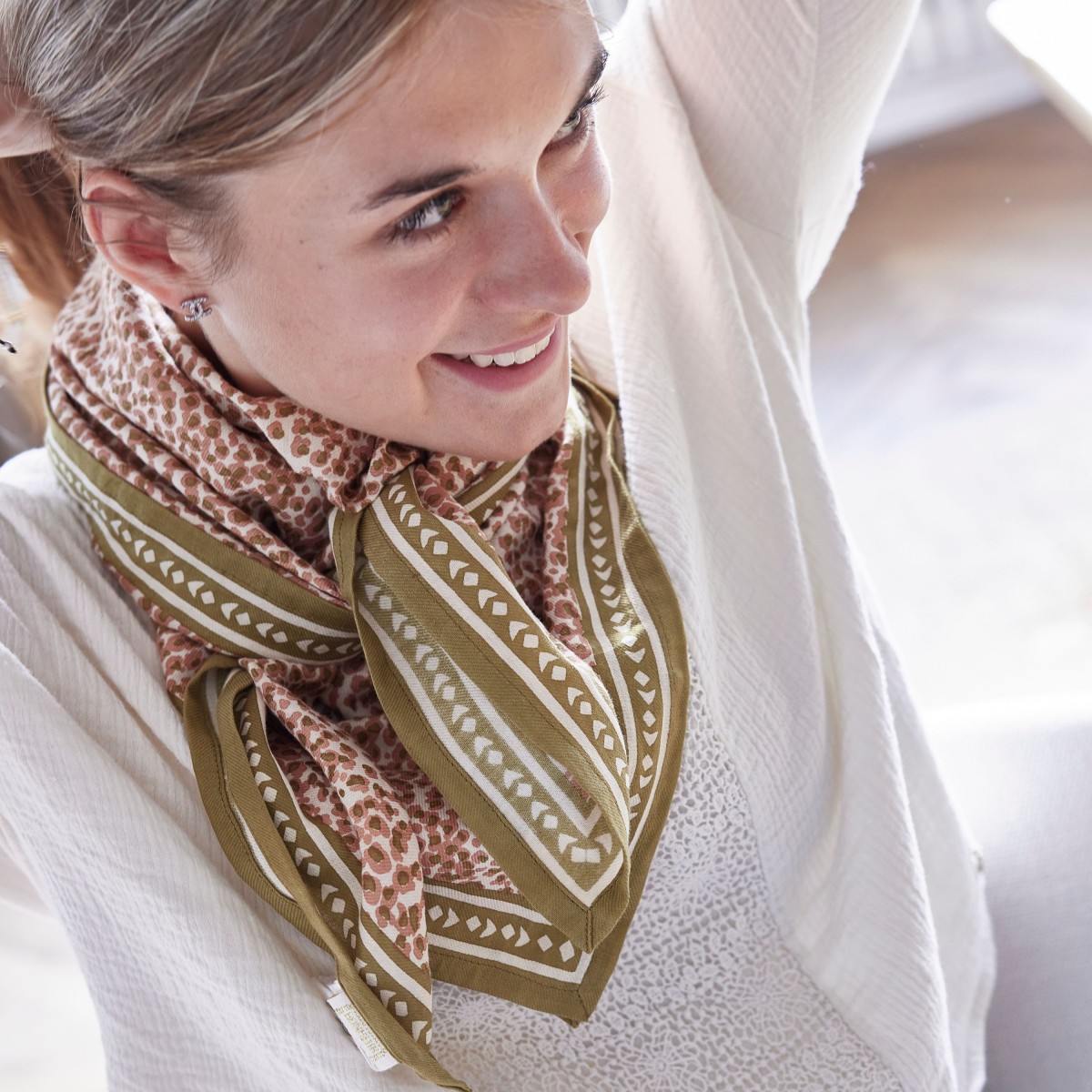 Apaches Collections – Big Foulard Latika « Ours » Kaki.