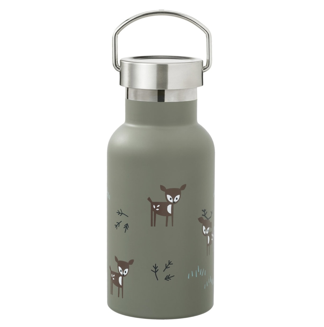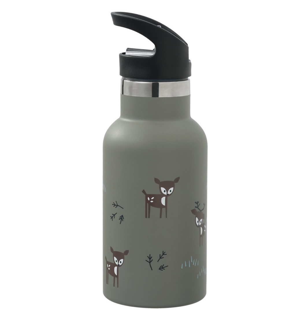 La gourde isotherme Fresk conserve au chaud ou au froid pendant 12h. Modèle: faon olive. Contenance: 350 ml.