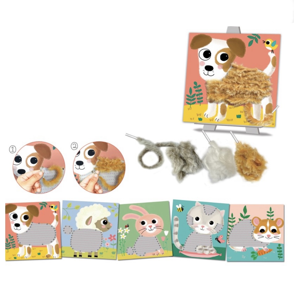 Un coffret qui saura émerveillé les enfants ! Grâce aux cartes à lacer et à la jolie laine les enfants créeront des douces fourrures d’animaux. Cette activité créative permettra aux enfants de développer leur dextérité tout en s’amusant.