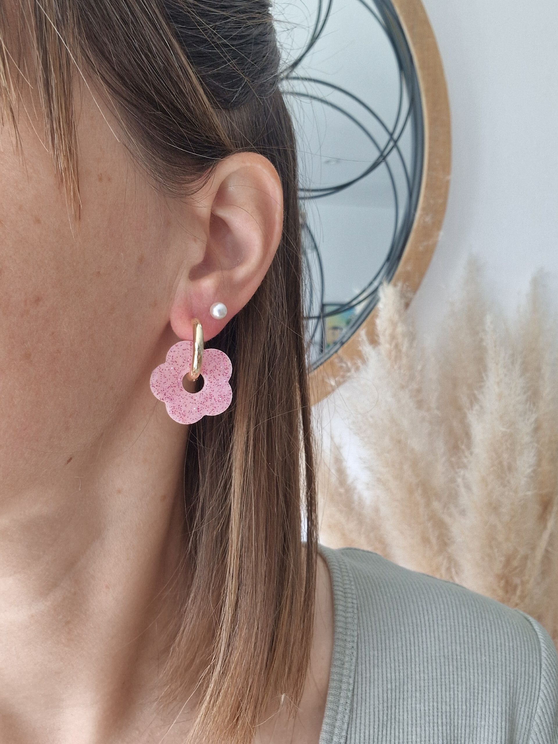 Les créoles « Les Clodettes » sont le bijou parfait pour ajouter une touche de fun et de couleur à votre look ! Avec leur design pétillant, ces créoles en forme de fleurs, ornées de paillettes scintillantes sont idéales pour exprimer votre personnalité avec style.