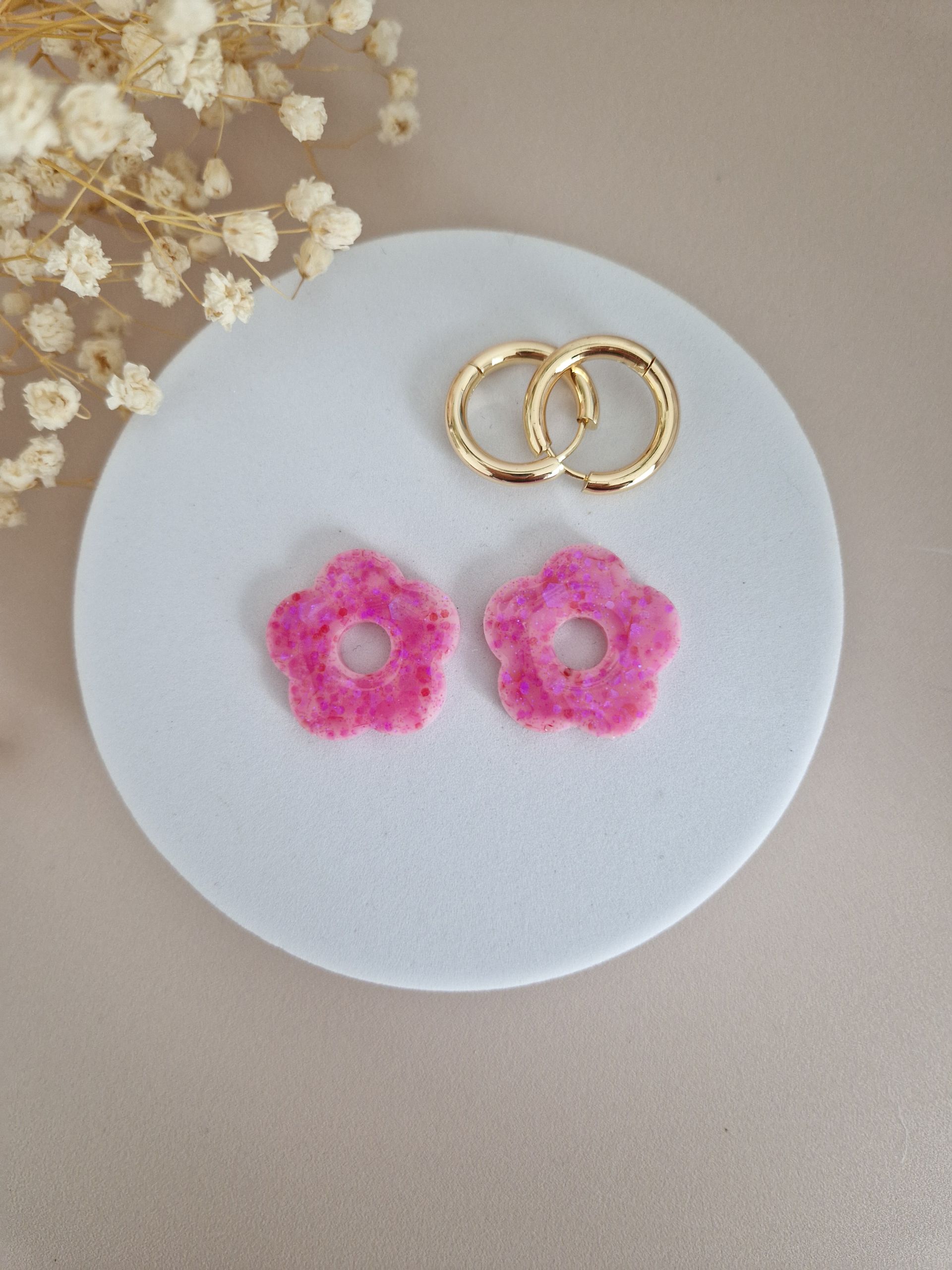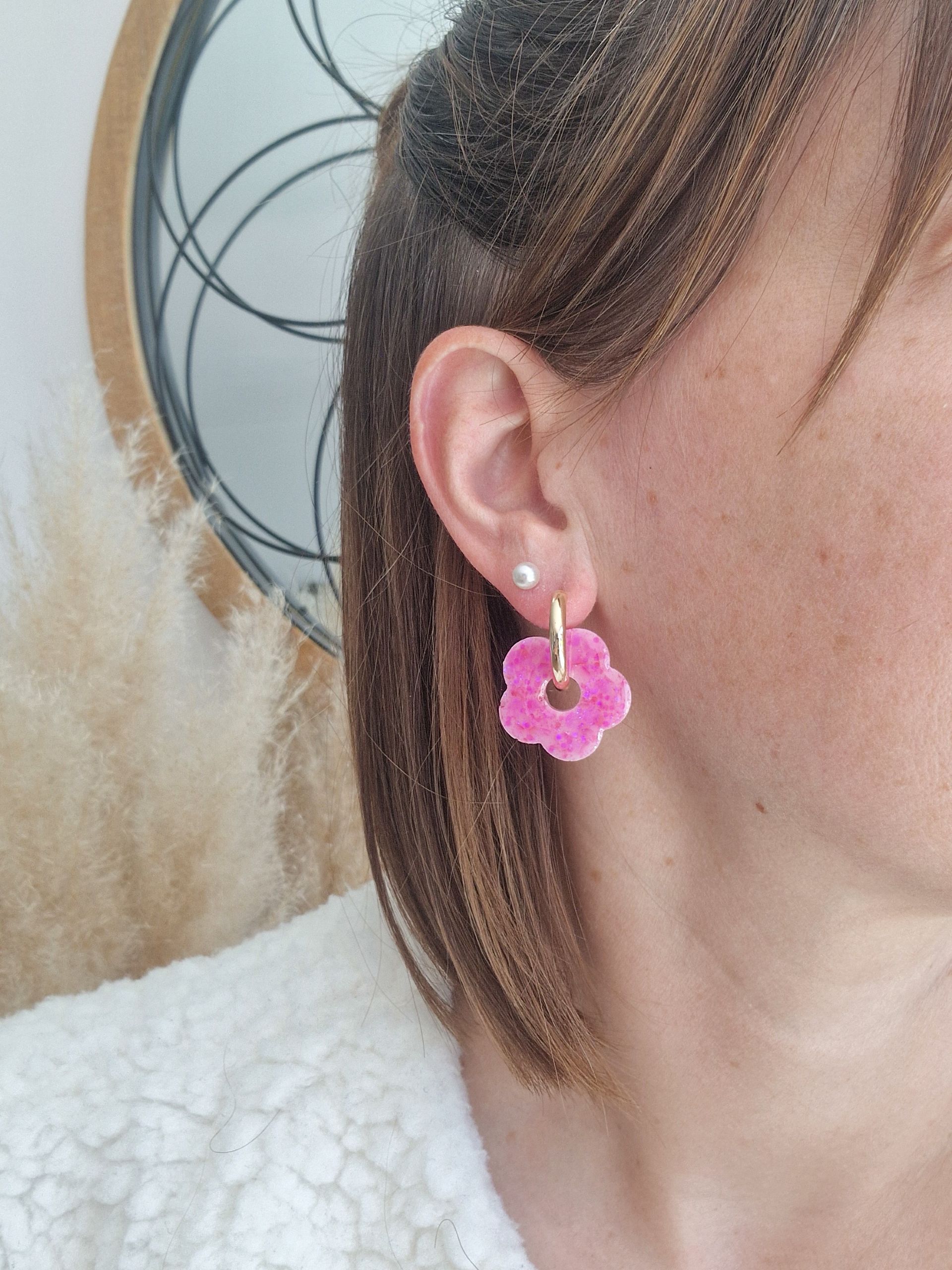 Les créoles « Les Clodettes » sont le bijou parfait pour ajouter une touche de fun et de couleur à votre look ! Avec leur design pétillant, ces créoles en forme de fleurs, ornées de paillettes scintillantes sont idéales pour exprimer votre personnalité avec style.
