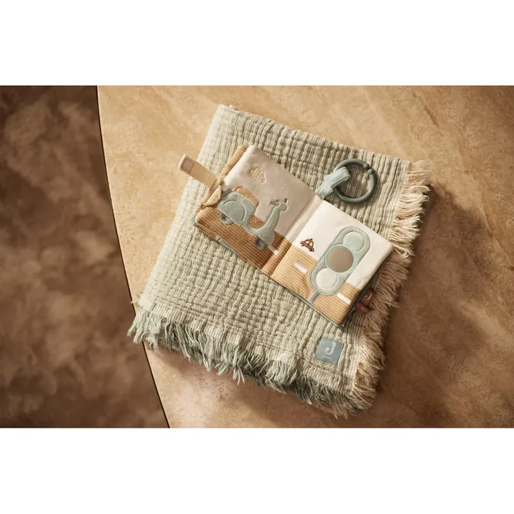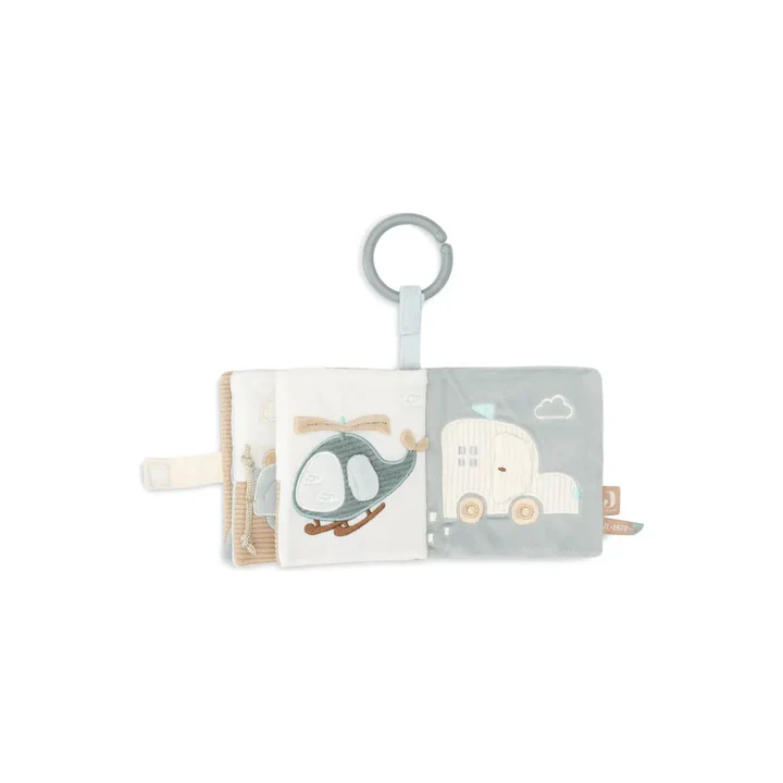 Explorez le monde avec ce carnet d’activités unique sur le thème « On The Go » ! Avec ses quatre pages de tissu côtelé super doux en Sea Green et Cloud Blue, ce livret est parfait pour les petites mains curieuses. Chaque page est pleine de surprises : des plis, des ficelles amusantes et de mignons petits miroirs en forme de feux de circulation. Ce livret d’activités stimule les sens de votre enfant et constitue des heures de plaisir, même en déplacement !