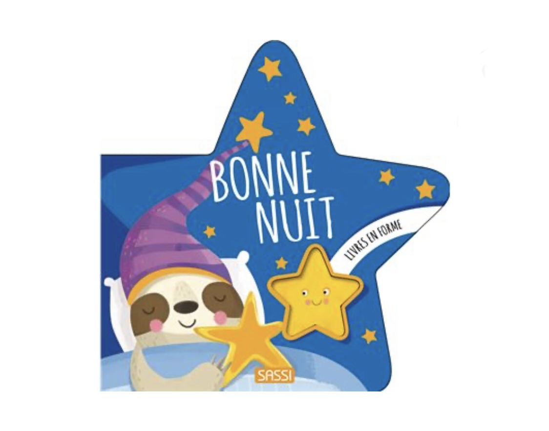 Livre en forme d’étoile avec une jolie histoire en rimes qui raconte avec tendresse l’heure du coucher.