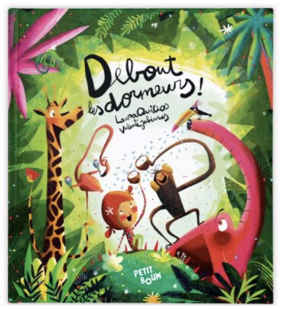 Accompagne le singe de la famille Boum réveiller tous ses amis de la nature. De la forêt à l’océan, vous passerez par tous les univers avec votre mini pour que le petit singe prévienne tous ses amis animaux de l’arrivée d’un nouvel ami. Accompagnez l’histoire avec les bouteilles sensorielles correspondantes pour chaque double page: singe, toucan, animaux de compagnie, forêt, ferme, jungle, océan, banquise, flamant rose et même la petite nouvelle: dragon ! Le caméléon se cache tout au long du livre. Votre mini saura-t-il le retrouver?
