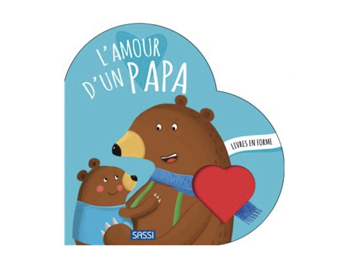 Un livre en forme de coeur avec une jolie histoire sur l’amour paternel. Un texte rimé d’amour avec de douces illustrations.
