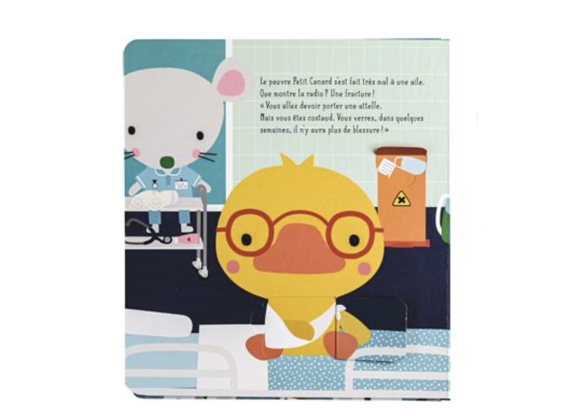 Un livre interactif qui dédramatise la peur du docteur !Et si on jouait au docteur ? Un bobo, un vaccin, un examen : il y a tout ce qu’il faut dans la sacoche du petit médecin ! C’est amusant de s’occuper de ses patients et ça ne fait même pas peur !Enrichi de petites pièces en carton fantaisies, ce livre à volets réjouissant invitera les petits à imaginer, à développer leur motricité fine et à prendre soin les uns des autres.