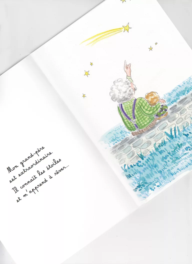 Un livre tout doux et espiègle à offrir à tous les grands-pères Mon grand-père est extraordinaire . Calé sur son tracteur, il évite les rosiers. Assis dans la remorque, j’attends de m’envoler. Un cadeau idéal à offrir pour une fête, une naissance ou un anniversaire à tous les Papi, Papy, Daddy, Grand-père, Bon-pa’, Bon-papa, Pépé, Papilou, Dada, Abuelo, Papé, Opa, Papichou, Papili, Papidou, Papours, Papito, Papoune, Dadou, Papily, Boppy, Papou, Papinou, Babou…