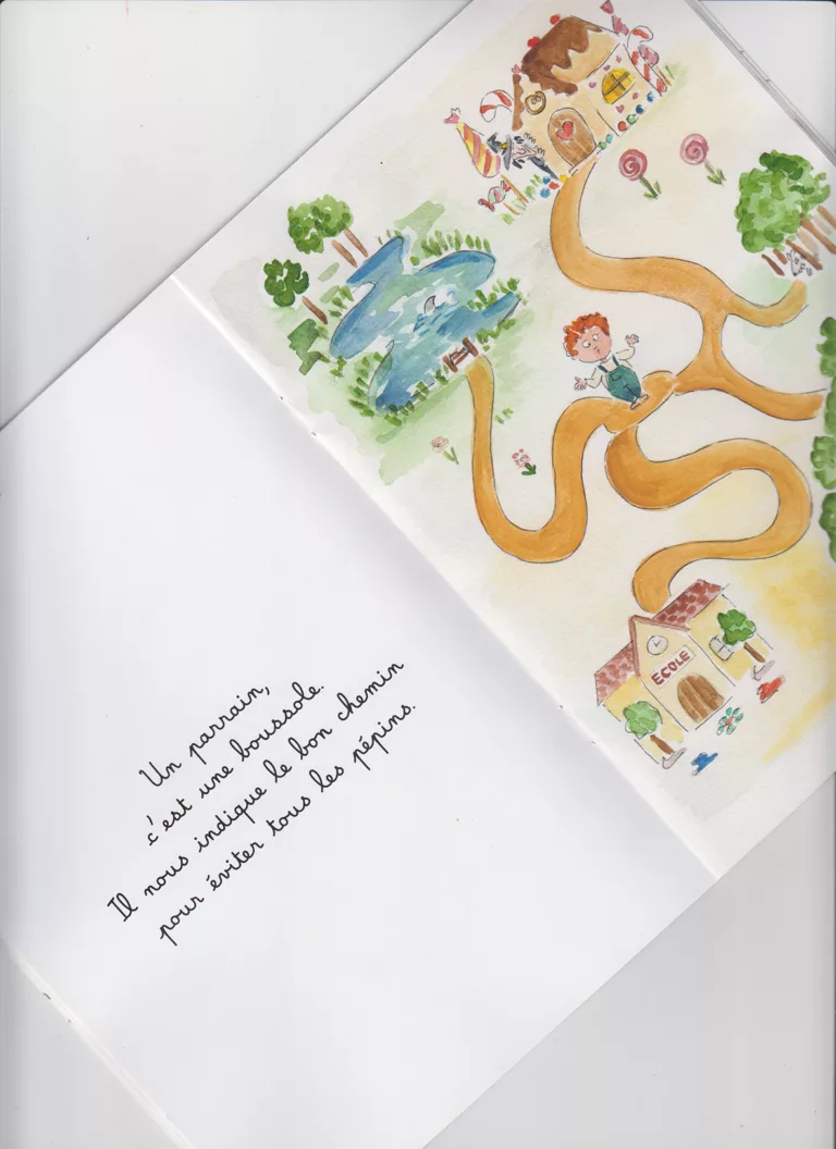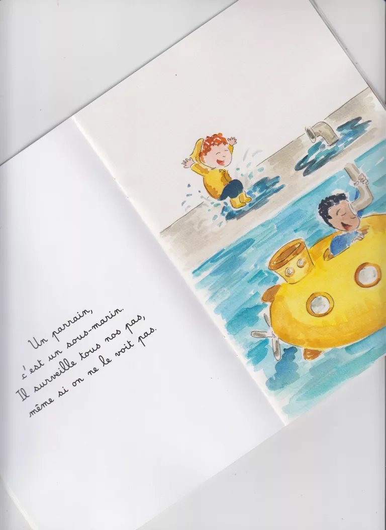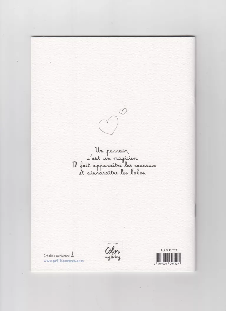 Un livre tout doux et espiègle à offrir à tous les parrains ! Un parrain, c’est un magicien. Il fait apparaître les cadeaux et disparaître les bobos. Un parrain, c’est un caméléon, un personnage magique qui prend plusieurs formes pour accompagner son/sa filleul(e) qui l’admire (forcément). Un poème doux et espiègle qui définit le rôle d’un parrain, un cadeau idéal pour l’annonce d’une naissance, un anniversaire ou une fête.