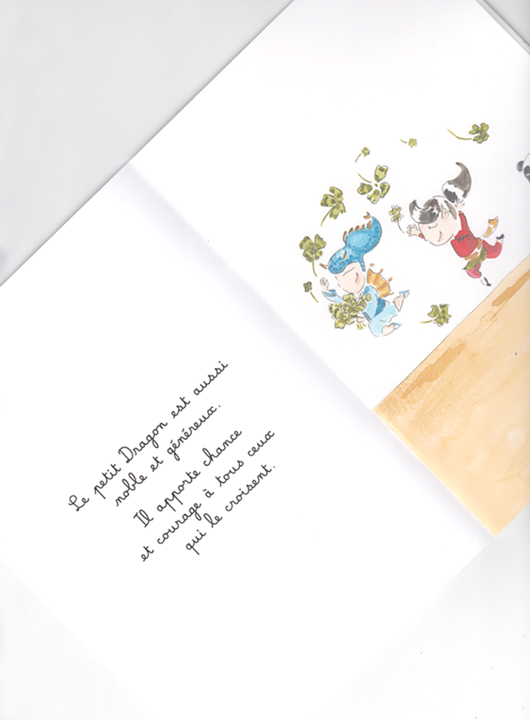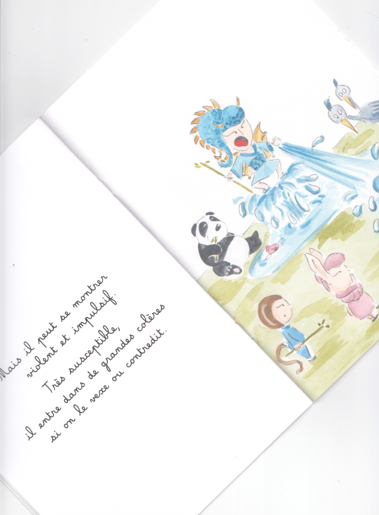 Le petit Dragon est doué, intelligent et magnétique. C’est le plus puissant de tous les animaux du zodiaque. Alors, lorsque l’empereur de Jade organise une grande course céleste, le petit Dragon est assuré de la remporter… « Le petit Dragon ne crache pas de feu mais invoque la pluie et fait danser les eaux . Il est doué, intelligent et puissant : il est Parfait ! « .