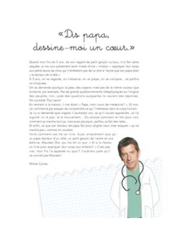 Enfin un livre clair et ludique pour expliquer leur corps aux enfants, quand ça va et aussi quand ça va pas ! Mais surtout une rubrique « que fait le docteur ? » pour chasser les appréhensions avant d’aller chez le médecin. Pourquoi doit-on parfois porter des lunettes ? Pourquoi faut-il se moucher ? Qu’est-ce que la fièvre ? À quoi sert un plâtre ? Pourquoi j’ai les cheveux blonds et ma copine les cheveux noirs ? Pourquoi c’est important de manger avant d’aller à l’école ? C’est vrai que le cerveau n’a jamais mal ? Les enfants trouveront enfin…