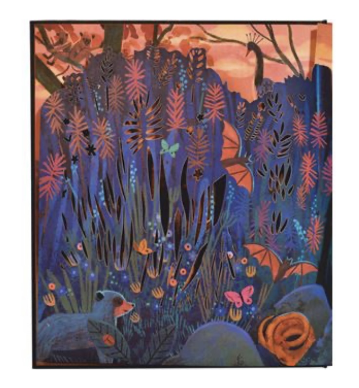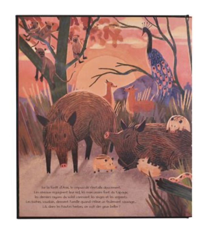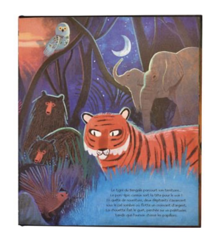 Un bel album dont les pages découpées au laser dépeignent de façon poétique la tombée de la nuit sur le monde sauvage. Pour un moment de partage avec les enfants sur les mystères du soir et la beauté de la nuit. Quand le soleil se couche, la nature et les animaux célèbrent les dernières lueurs du jour, dans la jungle d’Amazonie, dans l’océan Pacifique, en lisière d’une forêt française… Puis, viennent le crépuscule et la nuit. Alors, un autre monde s’éveille et s’agite dans des univers sombres, traversés par la clarté de la lune. Les coyotes crient dans le désert,…