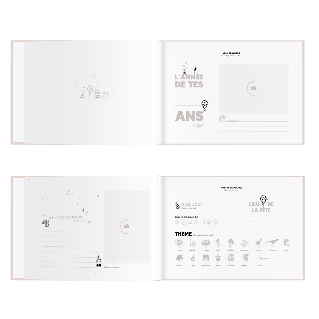Un joli livre pour garder précieusement chaque souvenirs des anniversaires de votre enfant. Thème de la fête, les amis présents ce jour là , les activités effectuées ou encore la photo du joli gâteau, ce livre vous permettra de noter chaque détail afin de conserver précieusement tous ces jolis moments !