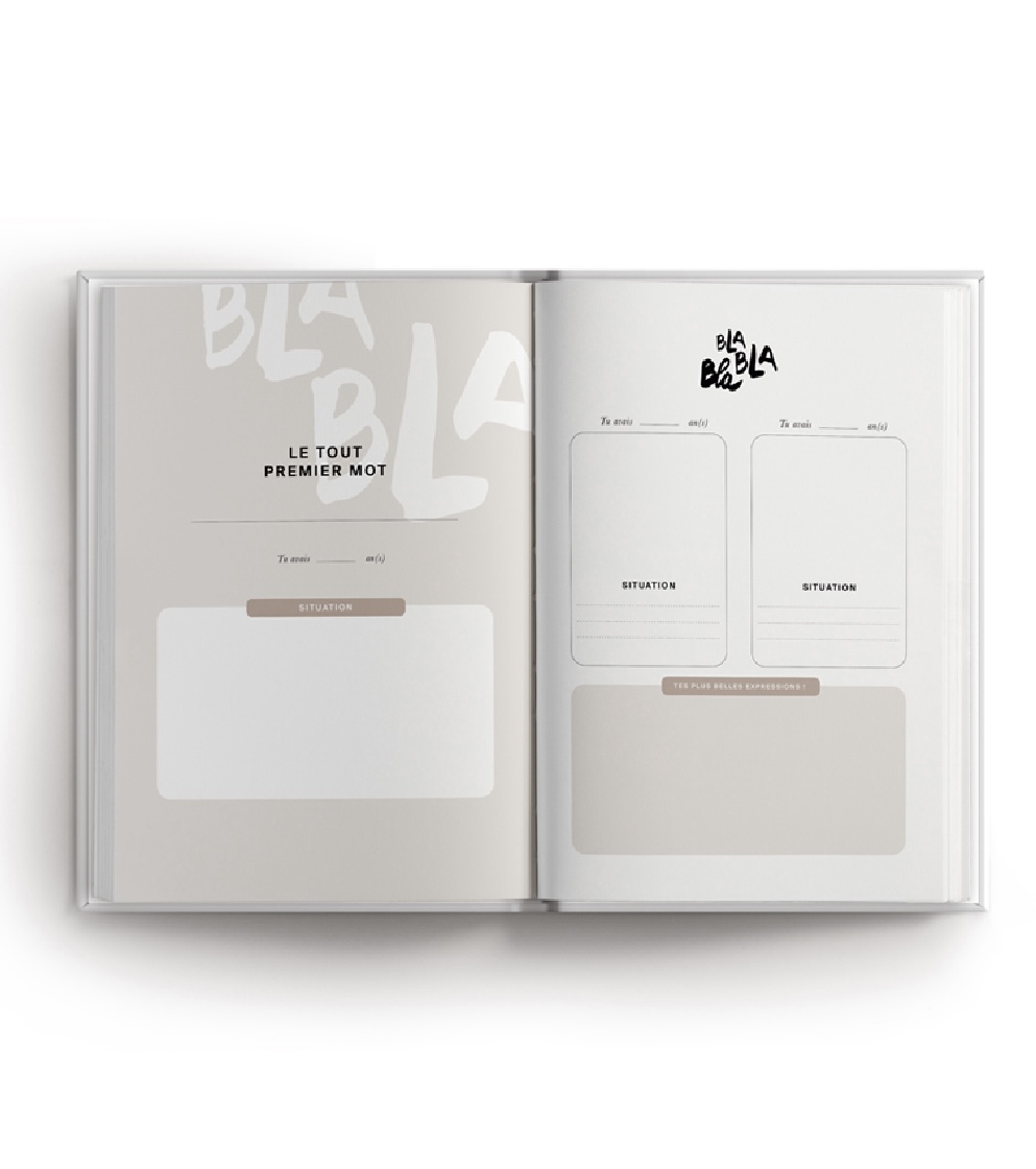 Parce que ces moments là sont précieux et qu’on veut pouvoir s’en rappeler plus tard, le carnet “Tes premiers mots” vous permettra de rassembler tous ces jolis souvenirs.