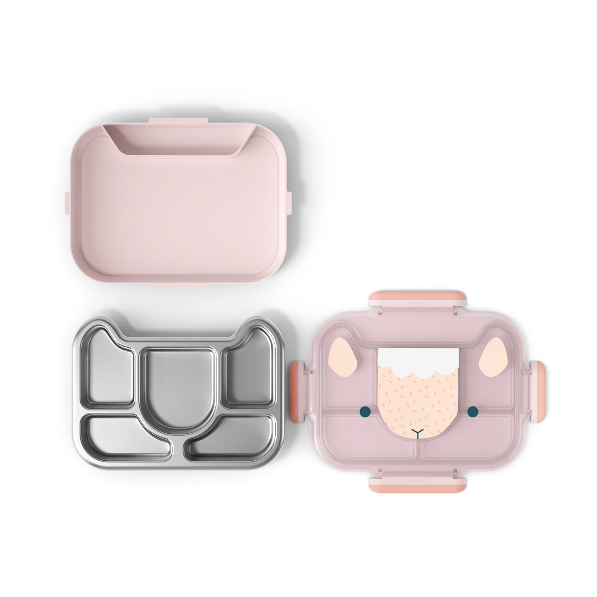 Grâce à son format plateau compact et sa capacité de 950 ml, les enfants pourront facilement transporter un repas complet pour en profiter à l’école ou au parc. Le mignon petit mouton sur son couvercle transparent veillera sur leur repas en attendant l’heure de manger ! Le compagnon des déjeuners complets, bien organisés !