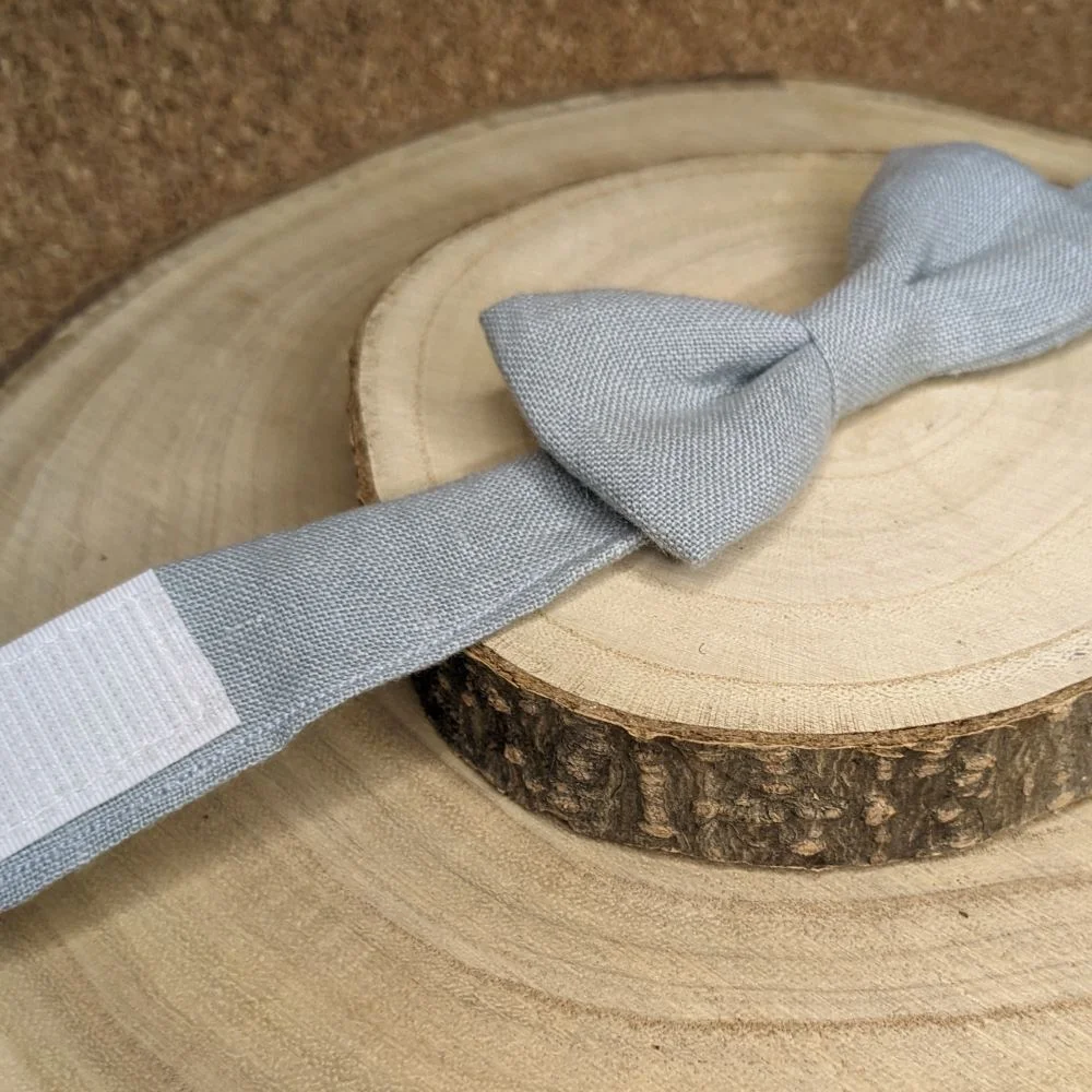 L’incroyable bleu-gris celadon de ce nœud papillon enfant égayera sa tenue ! Réalisé en lin, ce nœud papillon cousu sur son tour de cou assorti, s’adapte à tous les tours de cou grâce à la bande auto-agrippante. Accessoire chic et incroyablement craquant !