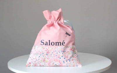 Le sac pochon personnalisé à chaussons, à doudou , à goûter : accessoires pratiques pour bébés, enfants ou jeunes ado