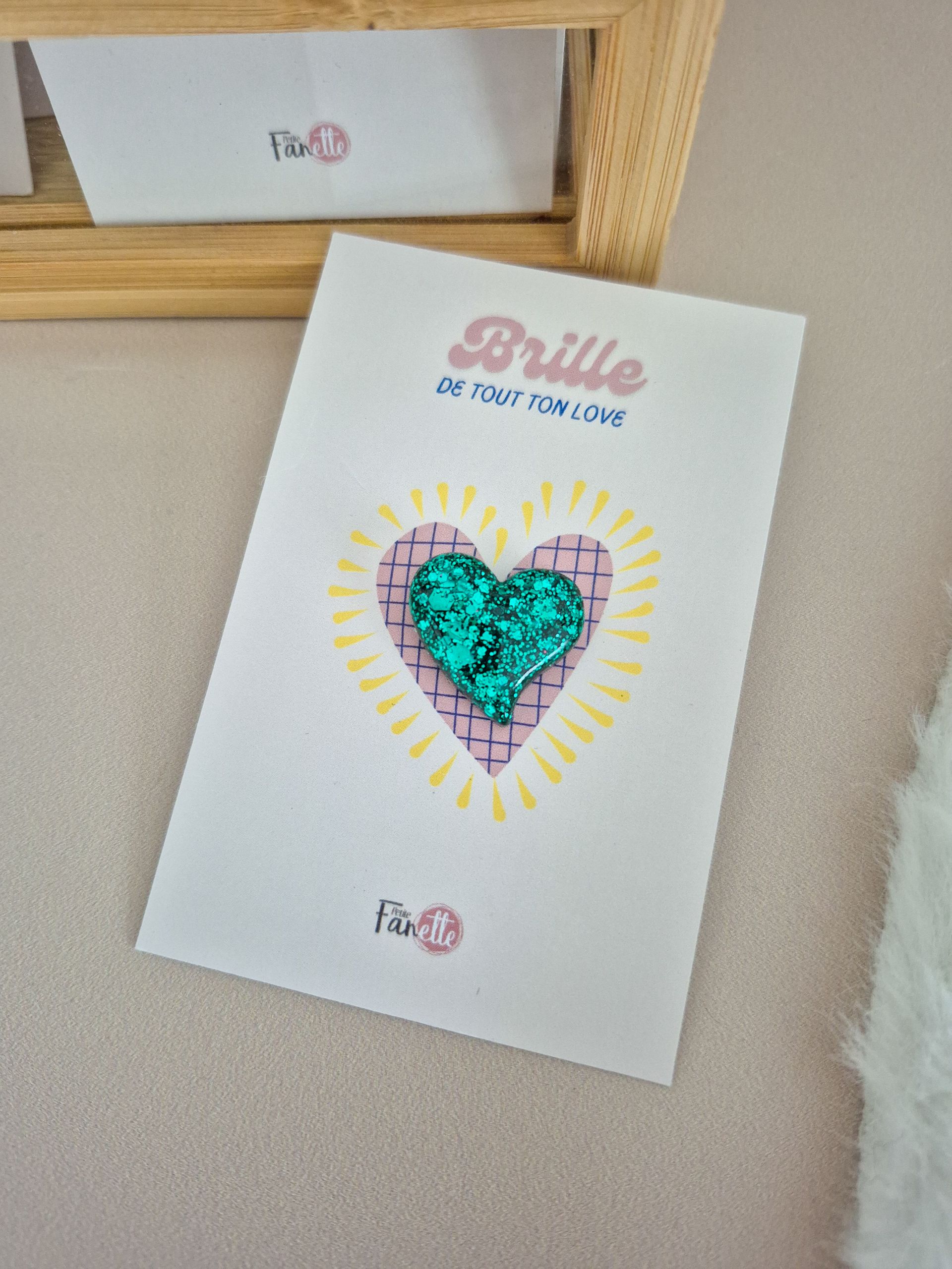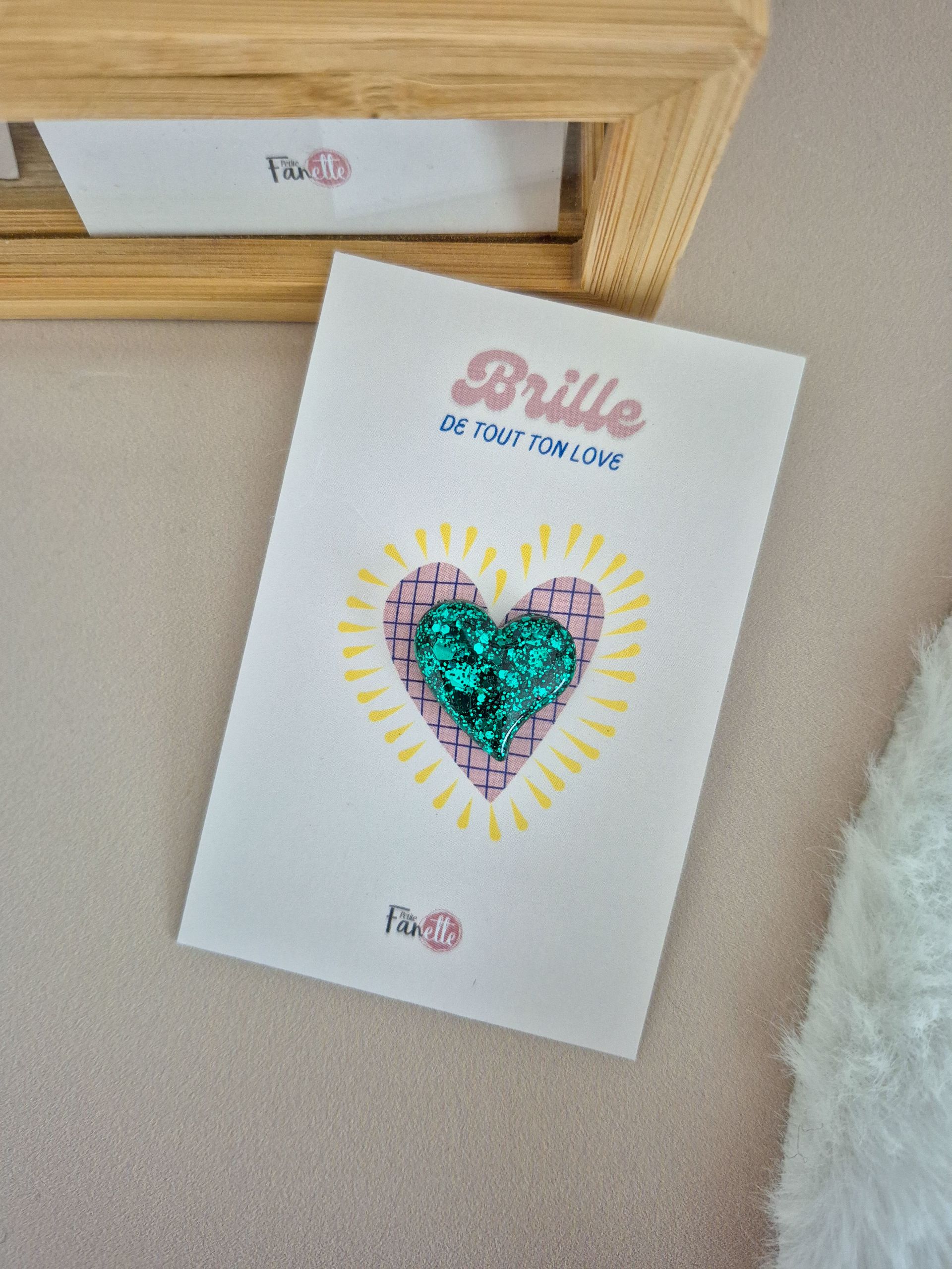 - Message : « Brille de tout ton love » imprimé sur la carte