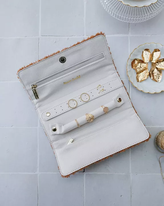Pochette à bijoux Catherine en moumoute camel.