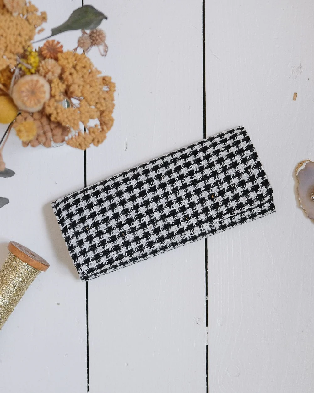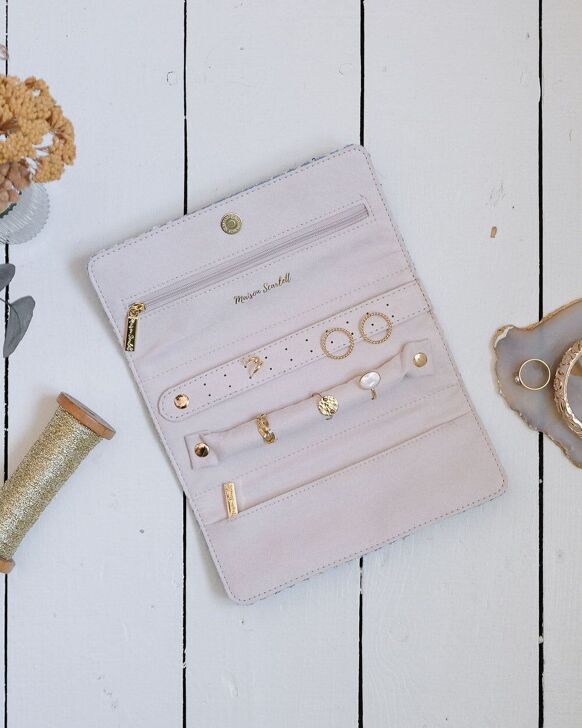 La pochette à bijoux Catherine en pied de poule en détails :