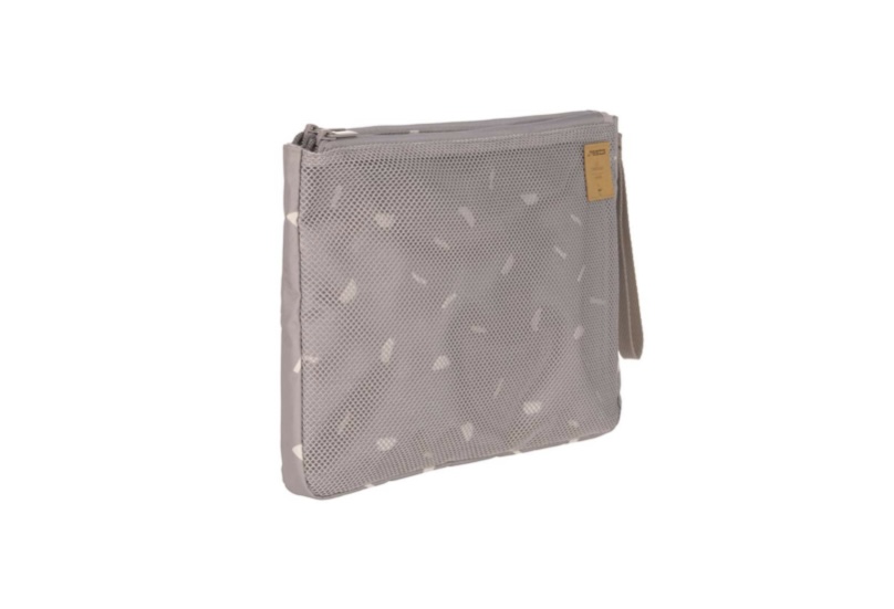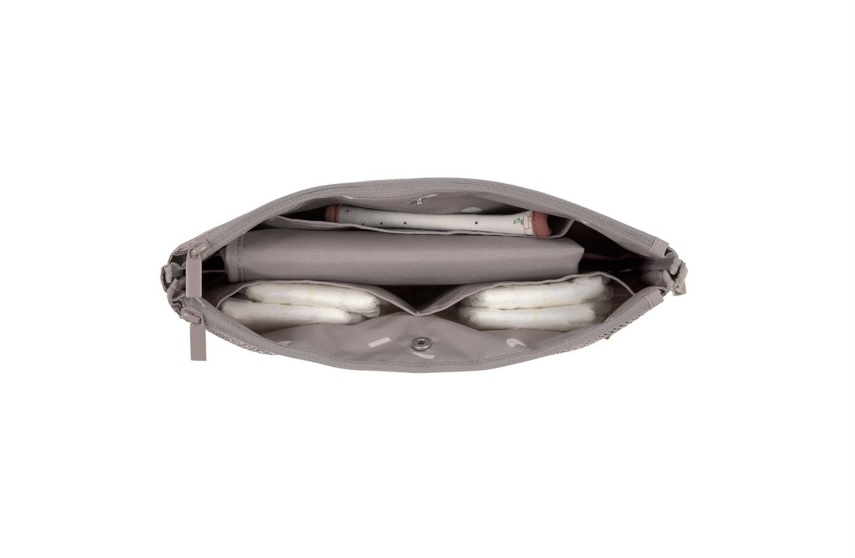 Tous les accessoires à langer sont bien rangés et visible dans la pochette de change grâce à des compartiments ingénieux et une doublure intérieure claire. Un compartiment imperméable est prévu pour les vêtements mouillés et les accessoires les plus importants sont toujours à portée de main et bien visibles dans la poche en filet.