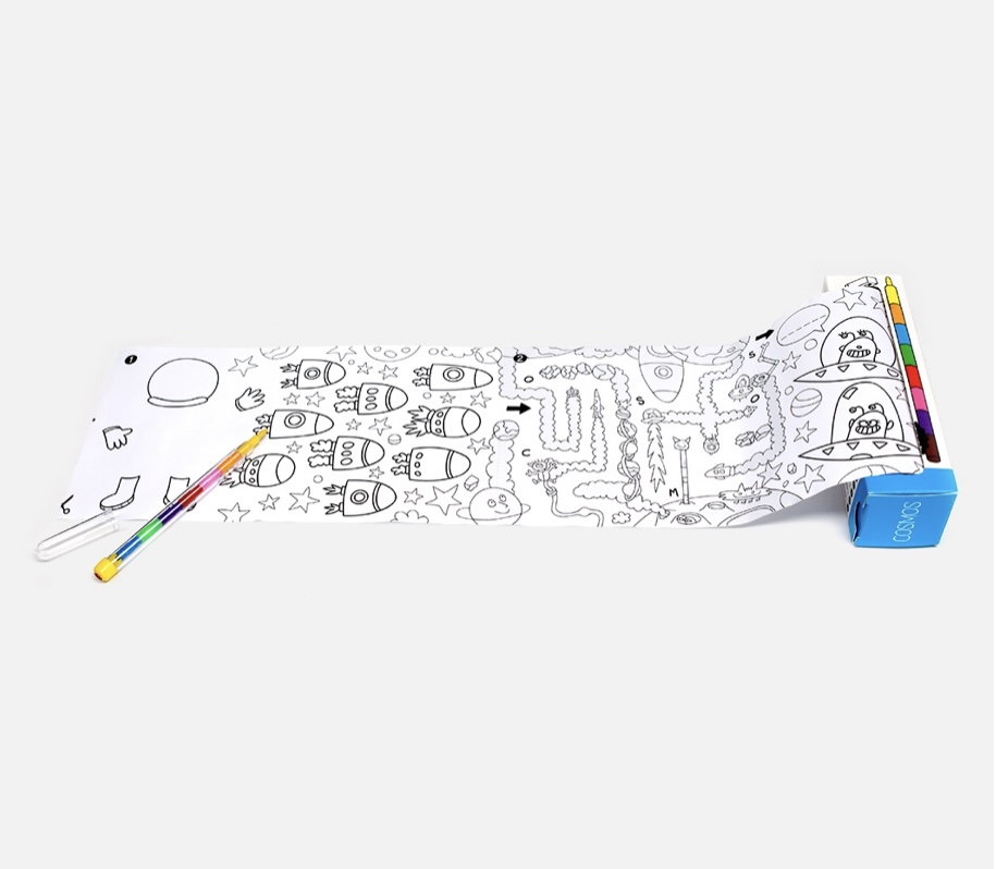 Astucieux, le pocket Games contient 1 mètre de jeux et de coloriage à dérouler + 1 crayon 8 mines.