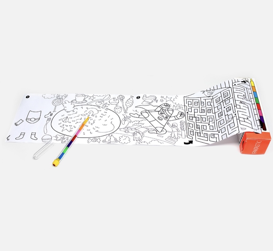 Astucieux, le pocket Games contient 1 mètre de jeux et de coloriage à dérouler + 1 crayon 8 mines.