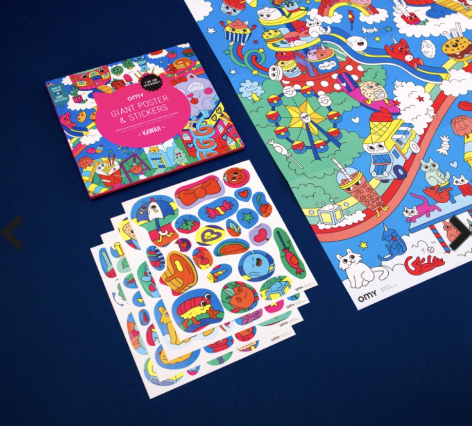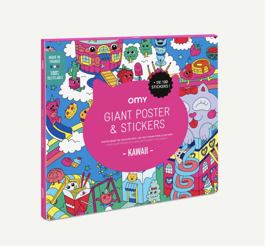 Poster géant avec 100 stickers- Kawaii