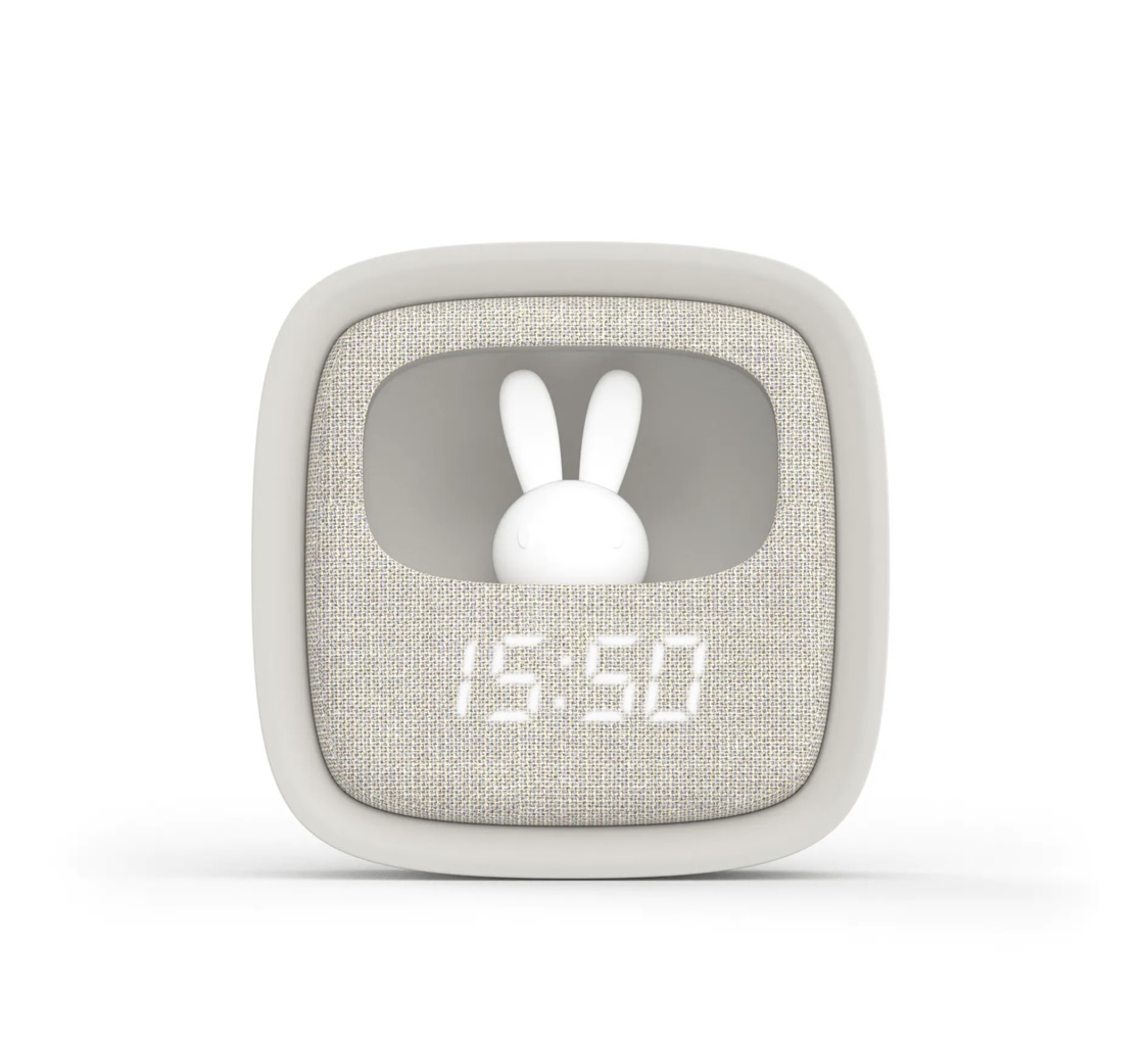 Vous pourrez programmer l’heure, la date et deux alarmes. Le réveil Billy veillera vos trésors grâce à sa veilleuse intégrée dans le petit lapin souple en silicone. La luminosité est réglable via un bouton tactile sur le réveil, très simple à utiliser.