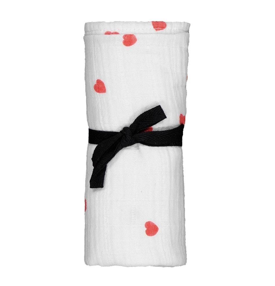 Lange (tetra) , l’indispensable de tous les parents. Deux tailles, à vous de choisir. Modèle coeur rouge. 70 X 70 cm ou 110 x 110 cm.
