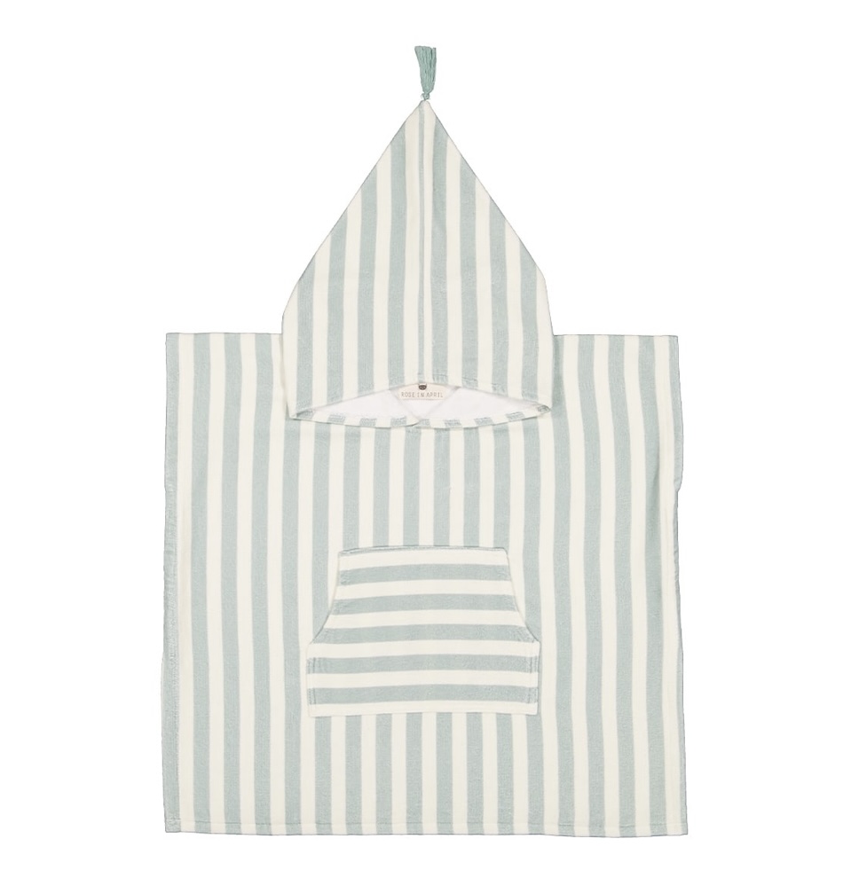 Poncho de bain de la célèbre marque Rose In April, rayé bleu/blanc.