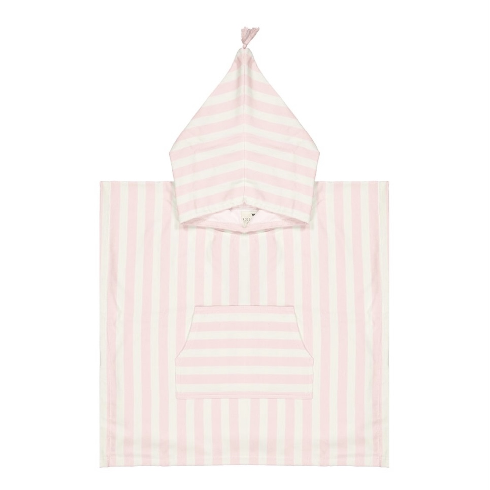 Poncho de bain de la célèbre marque Rose In April, rayé rose/blanc.
