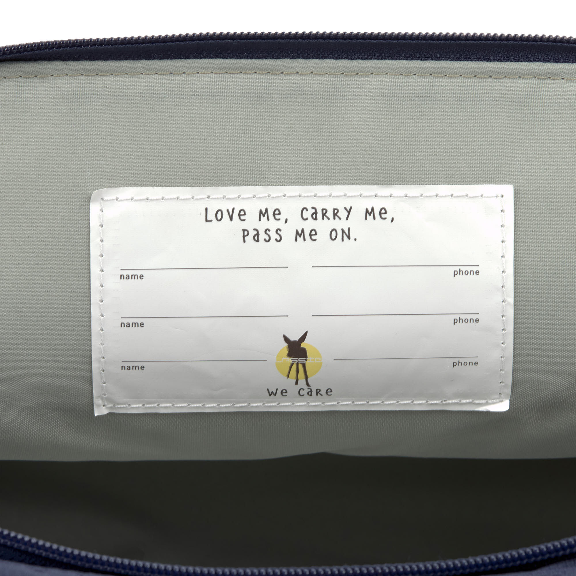 – étiquette nominative à l’intérieur du sac