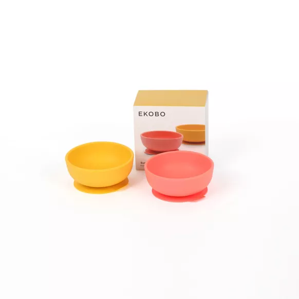 Set de 2 Bols ventouse en silicone – Coral / Mimosa.