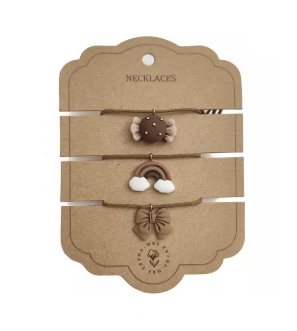 Pour accessoiriser la tenue de votre enfant, chaque collier à un pendentif différent ( une petite fleur, une feuille et un champignon). Vous pouvez également retrouver les barrettes cheveux assorties sur notre site https://histoiredetribu.com/produit/set-de-3-barrettes-pour-cheveux-modele-rainbow/