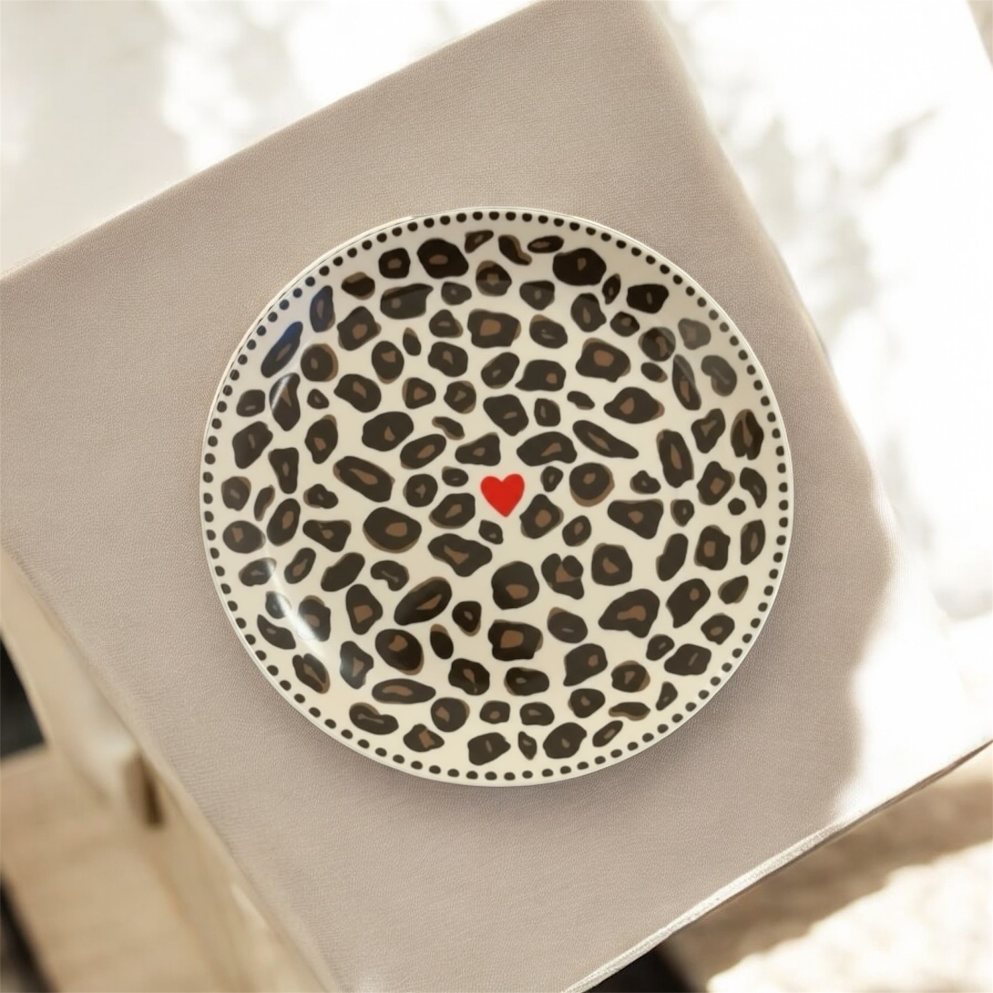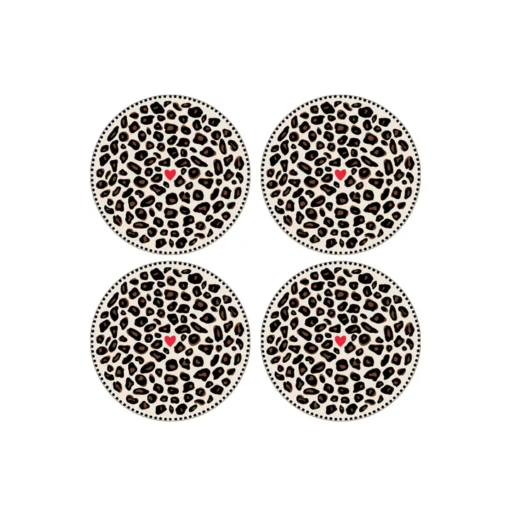 Ce set de 4 assiettes à dessert ose l’imprimé léopard avec une touche de tendresse. Chaque assiette dévoile un motif sauvage et élégant, rehaussé d’un petit cœur discret, pour une table à la fois audacieuse et pleine d’amour. Un clin d’œil à celles et ceux qui aiment mêler caractère et douceur, jusque dans les moindres détails. Parce que le style aussi se savoure, même à l’heure du dessert.