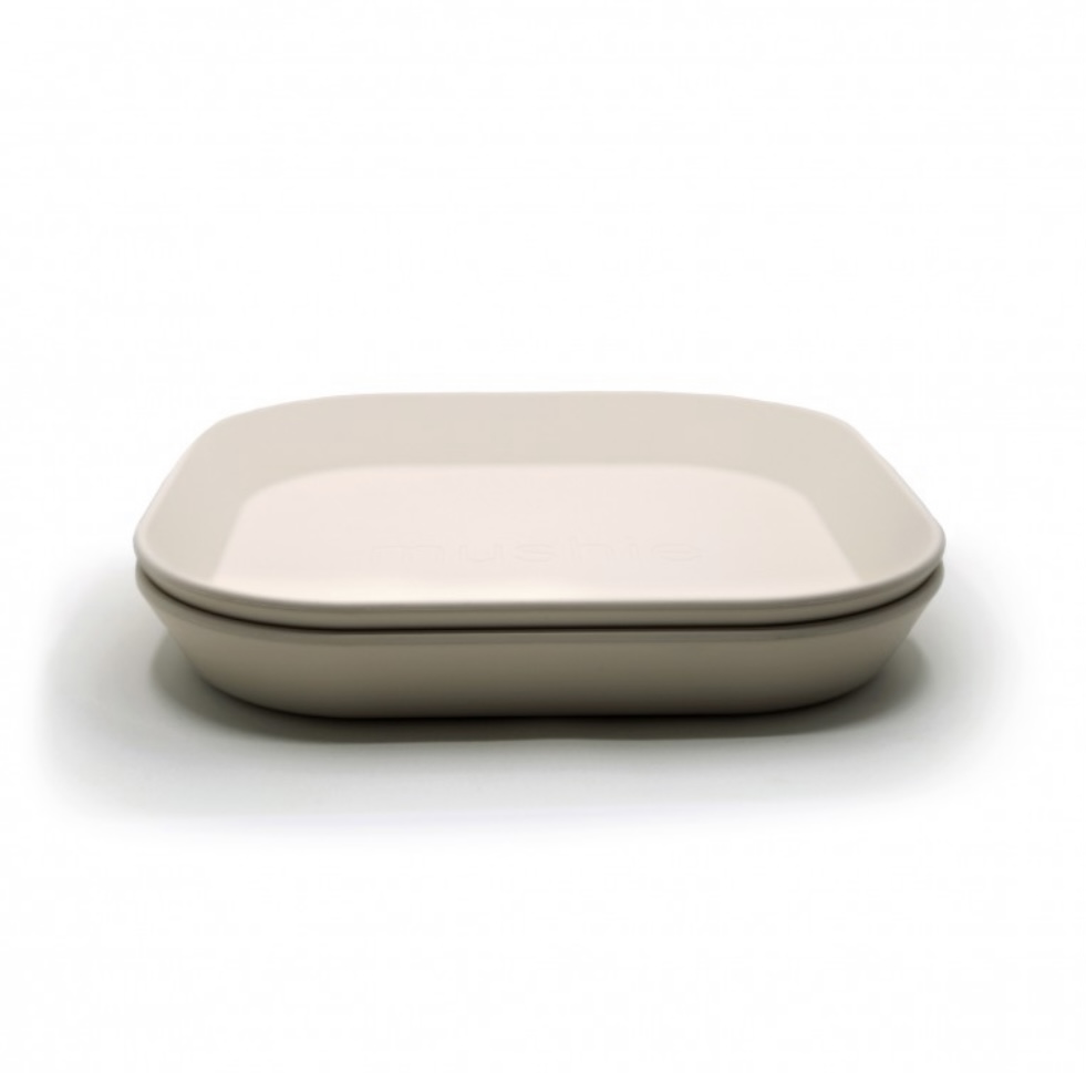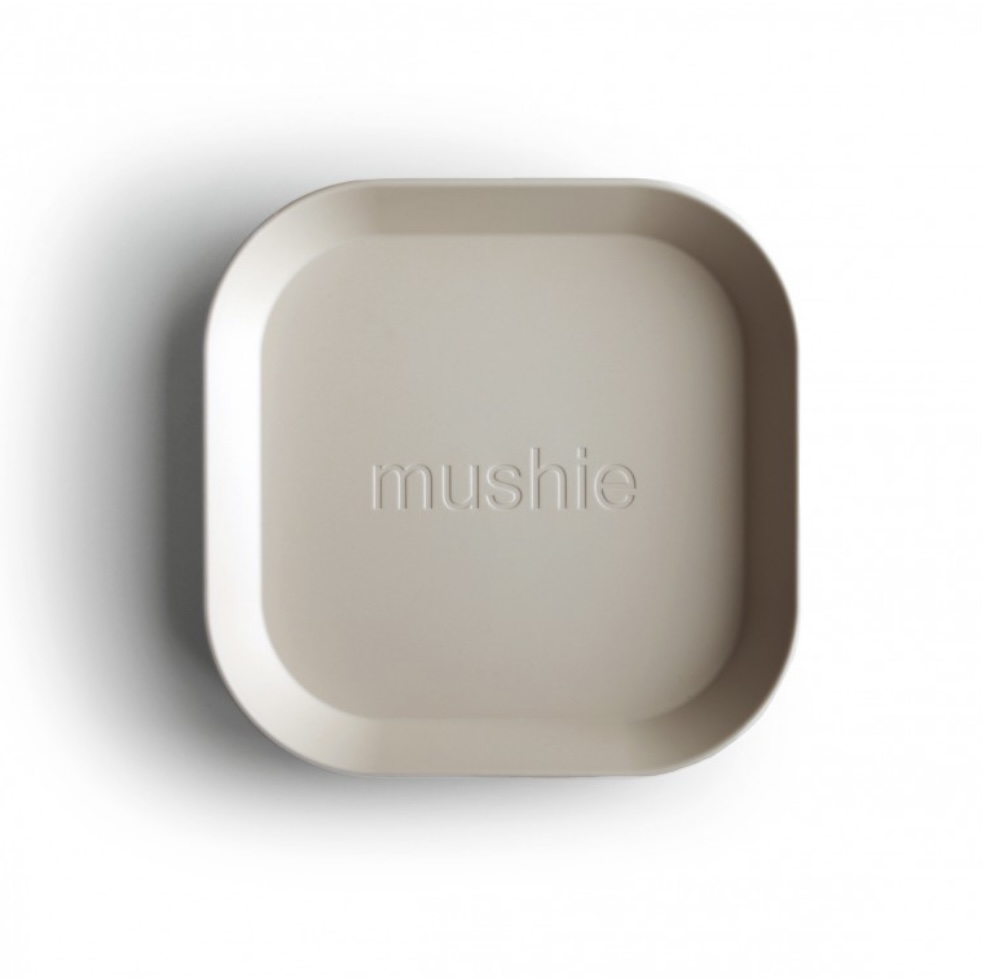 Set de 2 assiettes carrées de la marque Mushie. Coloris ivoire.