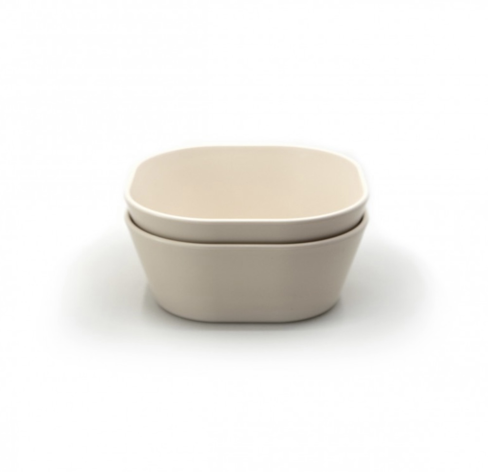 Set de deux bols carrés Mushie « ivoire ».