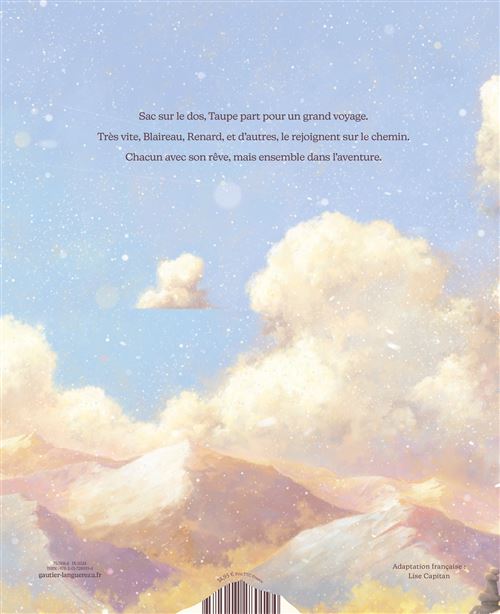 Sac sur le dos, une petite taupe part pour un grand voyage. Loin de passer inaperçue, elle attise la curiosité d’une foule de compagnons en quête d’aventures ! Intrigués, ils décident de la suivre et chacun rêve de son pays merveilleux. Mais la taupe n’a pas de destination. Et si le plus beau dans un voyage c’était la route que l’on partage ?