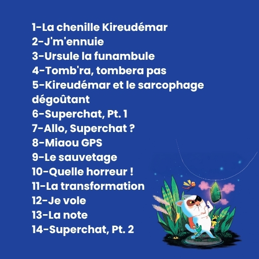 Superchat a une nouvelle mission et accepte d’aider une chenille bien embêtée… Musiques entraînantes et humour sont au rendez-vous de cette aventure originale.