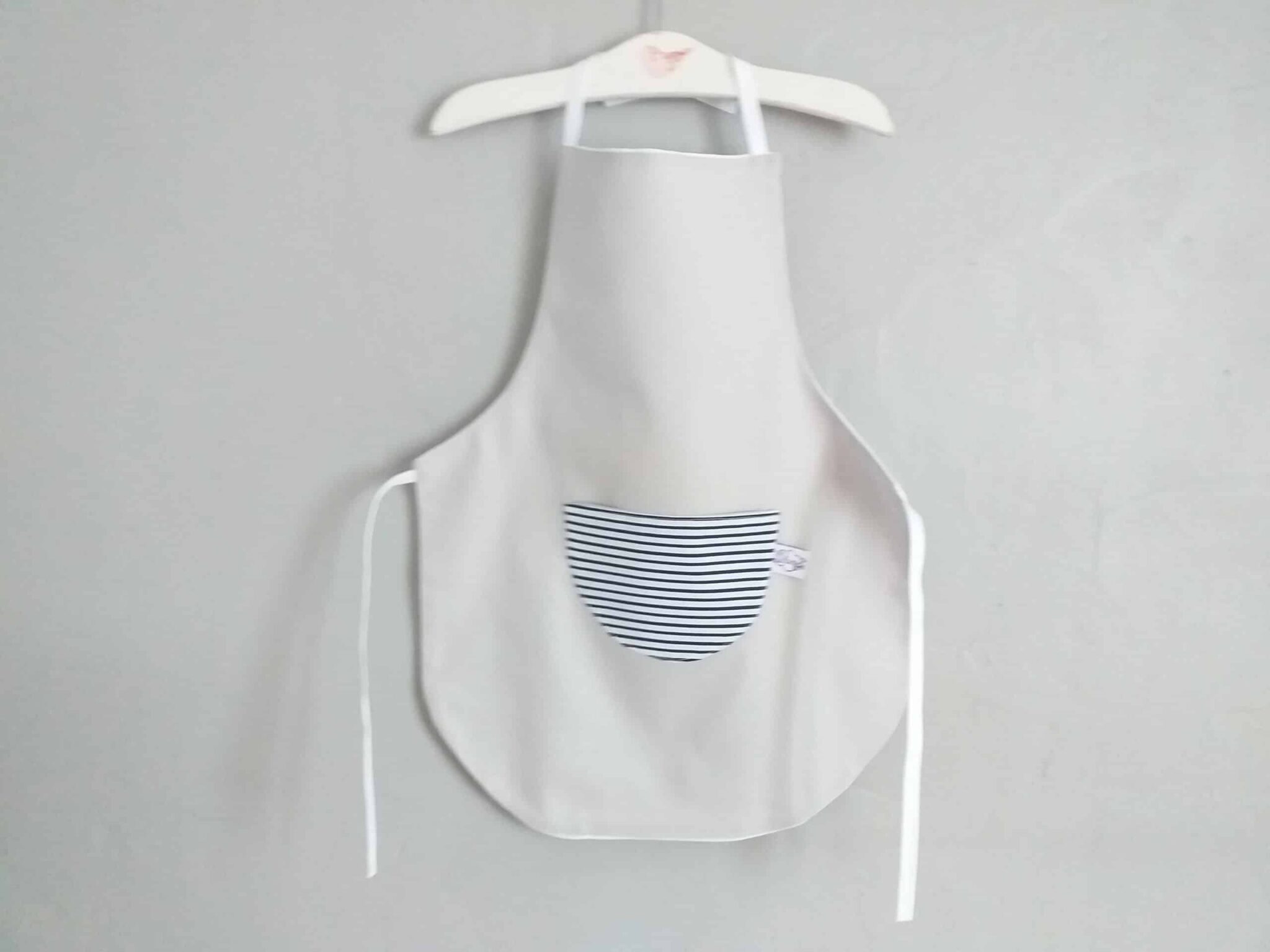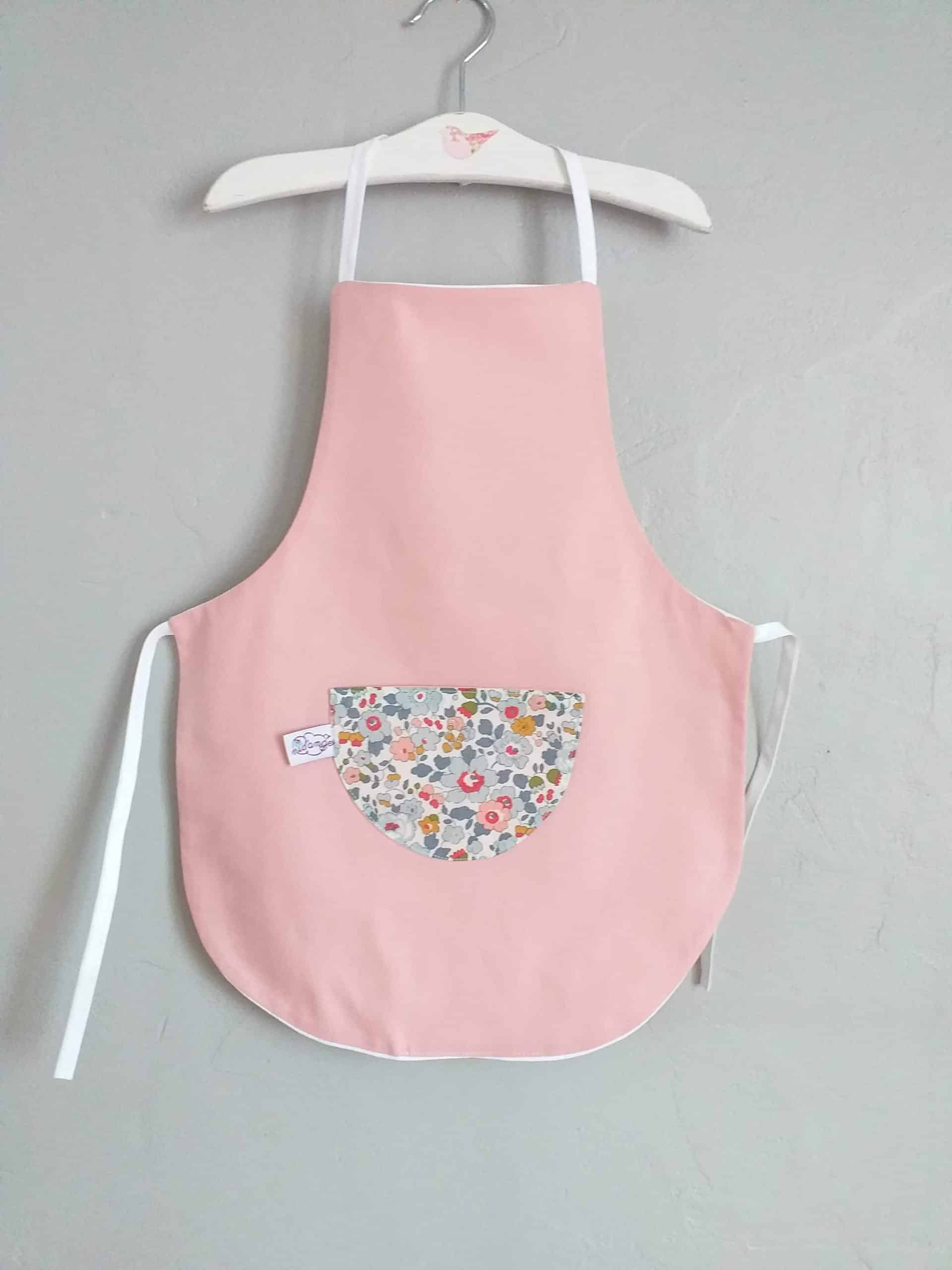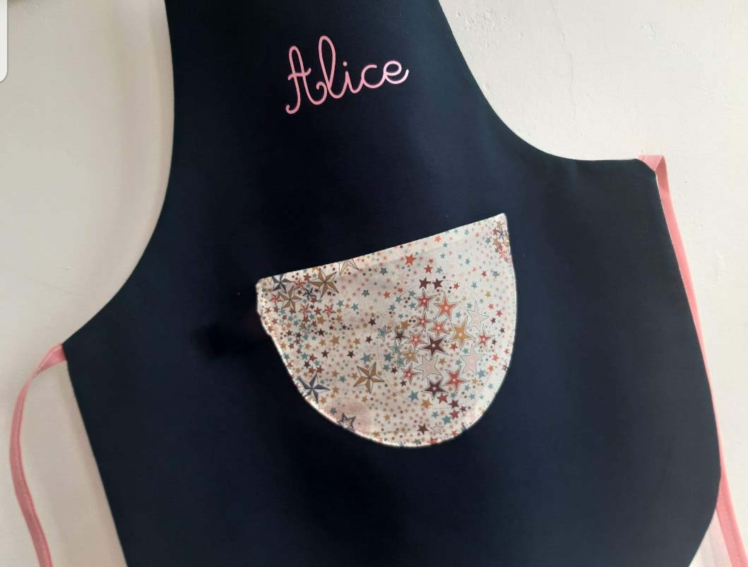 - Le tablier enfant est disponible en différentes couleurs unies, pour garçon comme pour fille. Personnalisez tout simplement le tablier pour enfant en choisissant le tissu à motifs et la couleur du prénom, qui sera apposé sur le tablier.