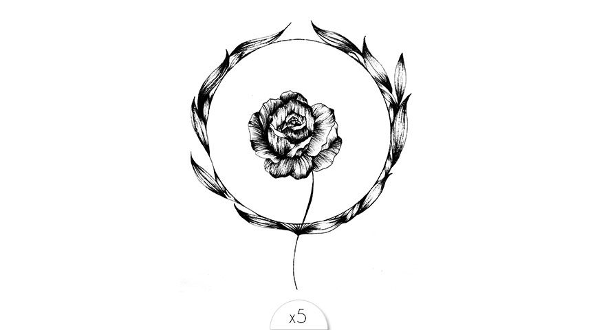 Tatouage éphémère Fleur noire, dessinée par l’illustratrice lyonnaise Eleonore M. Tatouage livré en 5 exemplaires.