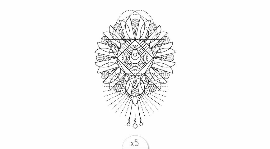 Tatouage géométrique à l’encre noire dessiné par Adèle Gidée. Tatouage livré en 5 exemplaires.