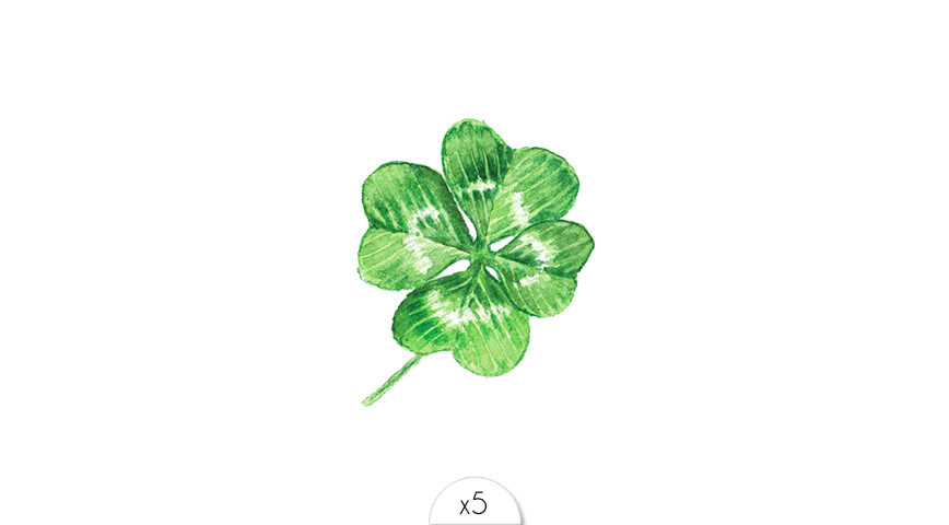 Adoptez le symbole de la chance avec ce petit tatouage trèfle à quatre feuilles façon aquarelle. Livré en 5 exemplaires.