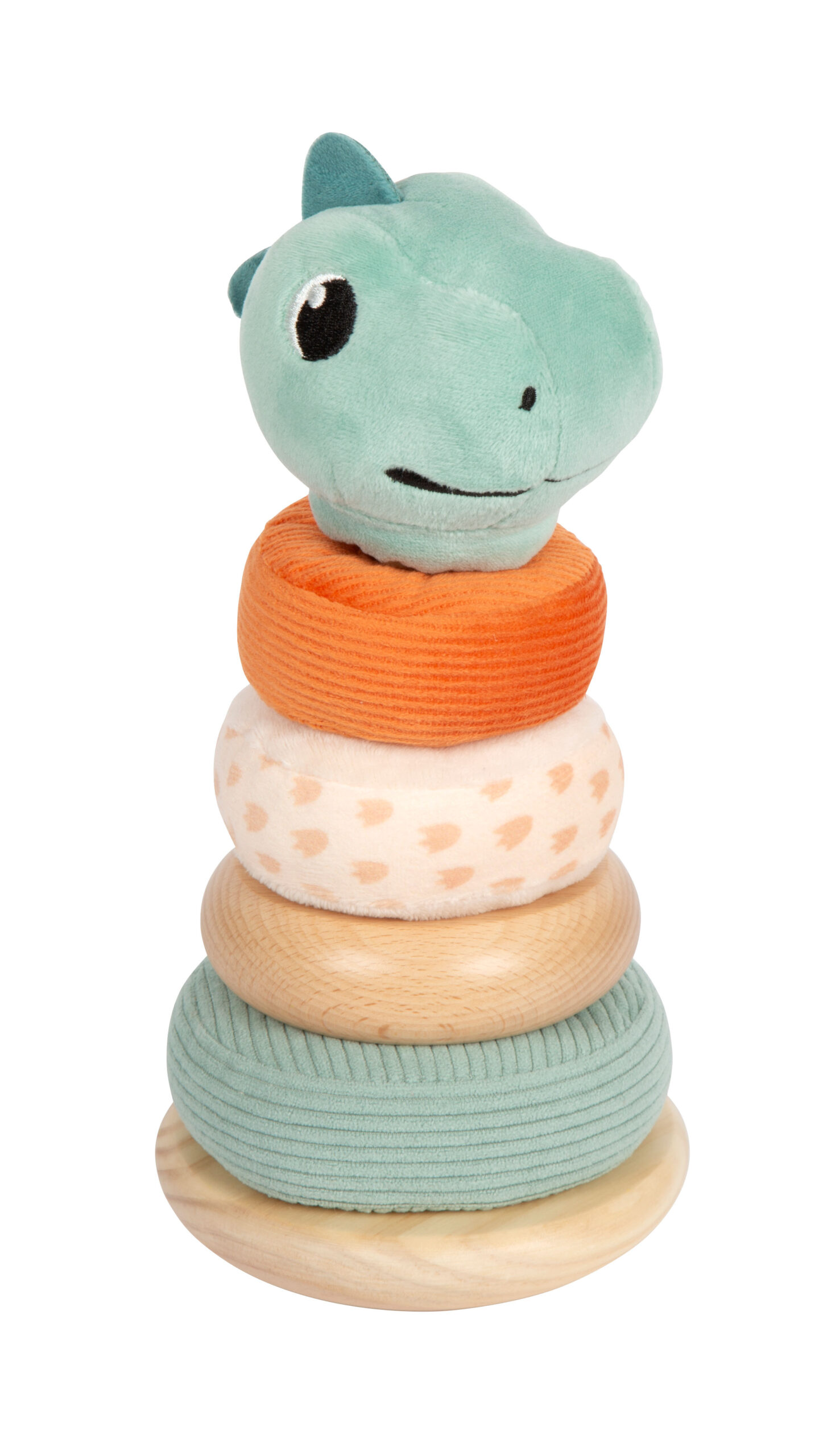Equipé de quatre anneaux à empiler, trois en tissu et un en bois, ce jouet de motricité vous invite à saisir, empiler et découvrir.