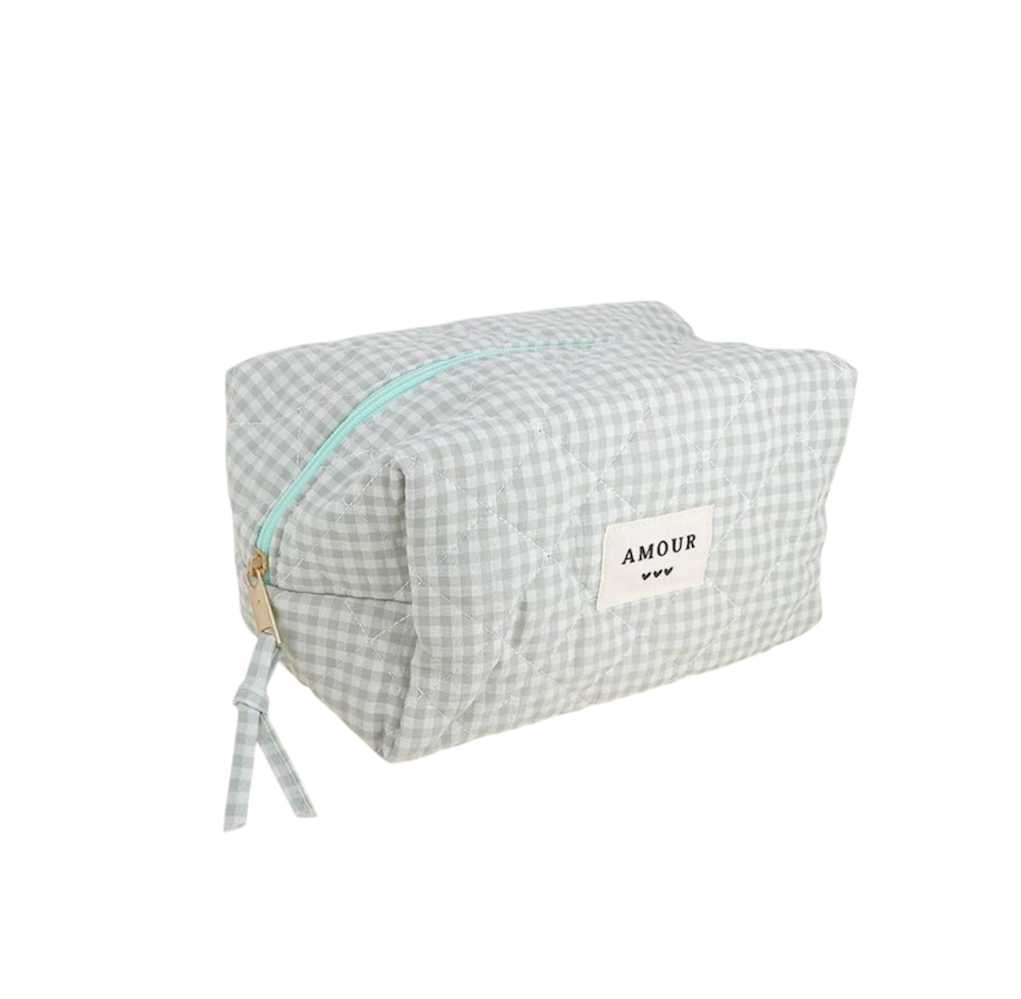 Trousse (grande) AMOUR et 3 coeurs – Vichy sauge.