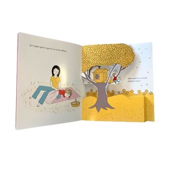 L’incontournable inventaire des moments de vies partagés entre une mère et son enfant, où tout devient prétexte à s’aimer, se réinvente en pop-up ! 14 animations pour s’amuser et s’émerveiller. Sur chaque double page, Astrid Desbordes oppose en vis-à -vis des situations contraires, qui jouent avec aisance sur les registres du quotidien et de l’imaginaire, de la poésie et de l’humour. Le message de cet irrésistible album est simple et limpide : l’amour est constant et sans condition. Mais c’est dans la toute dernière phrase que se cache le véritable secret : « Je t’aime parce que tu es mon enfant / mais que tu…